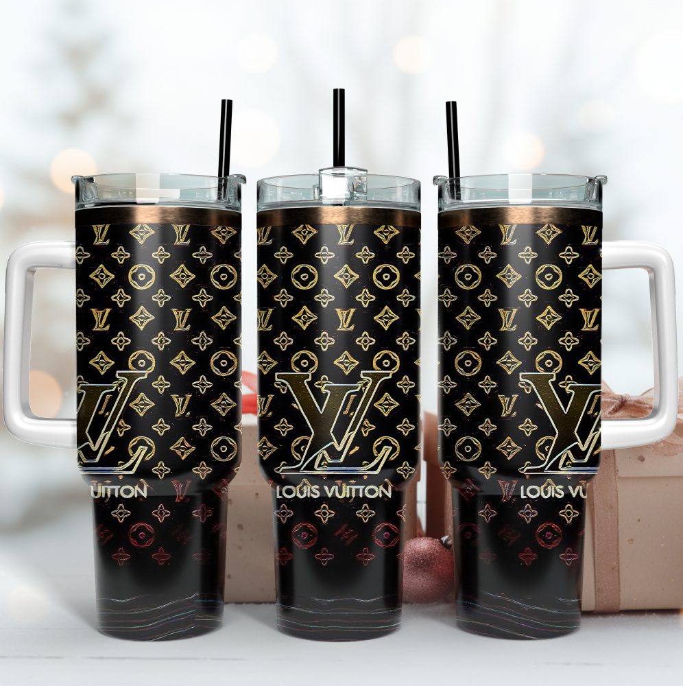 Louis Vuitton Glitter Lv Logo Custom Stanley Quencher 40Oz Stainless Steel Tumbler With Handle