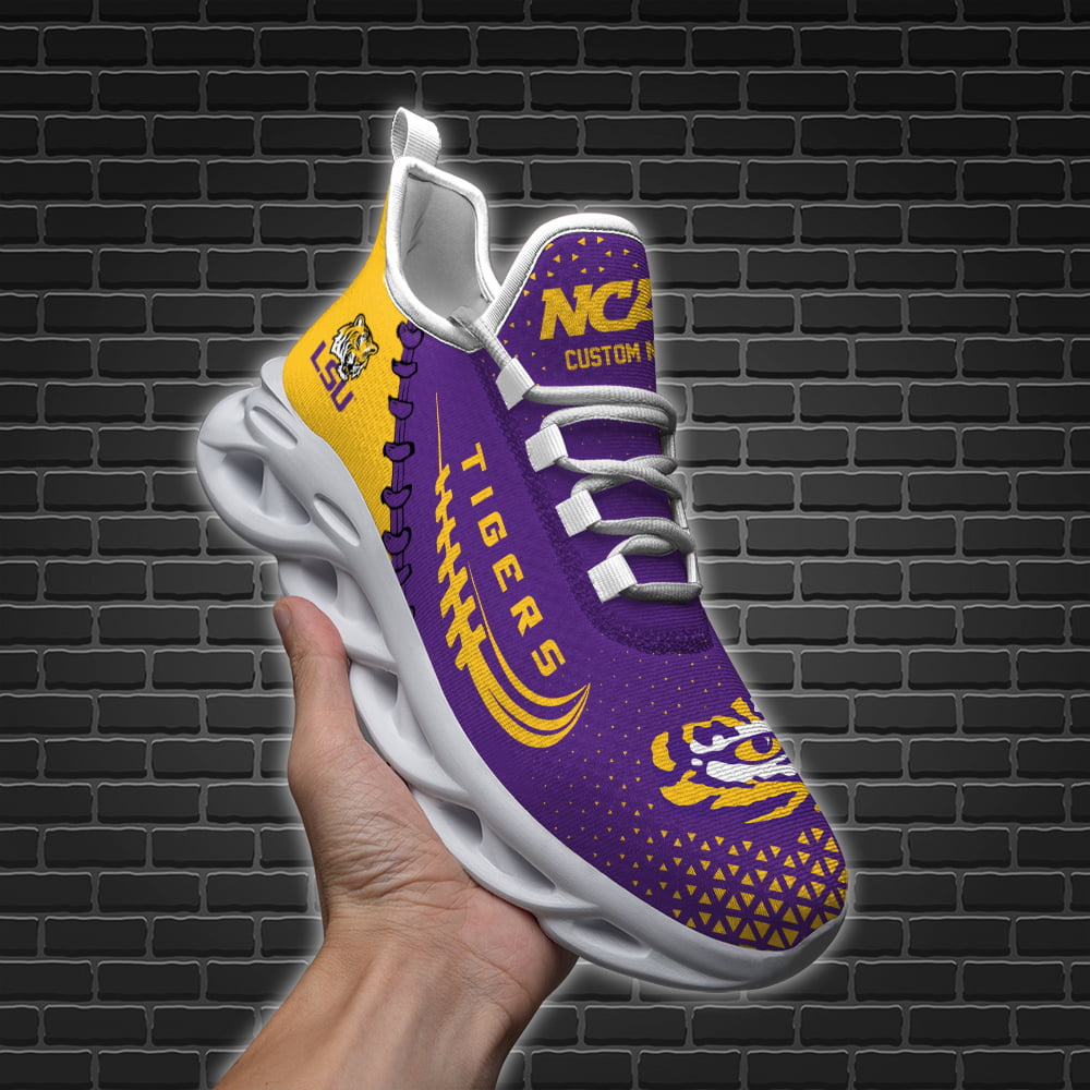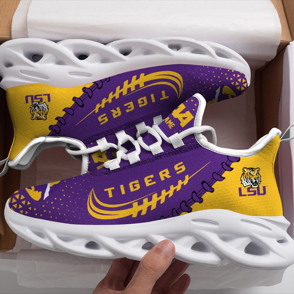 LSU Tigers NCAA Max Soul Shoes Sneakers Printed White And Black Sole For Men And Women