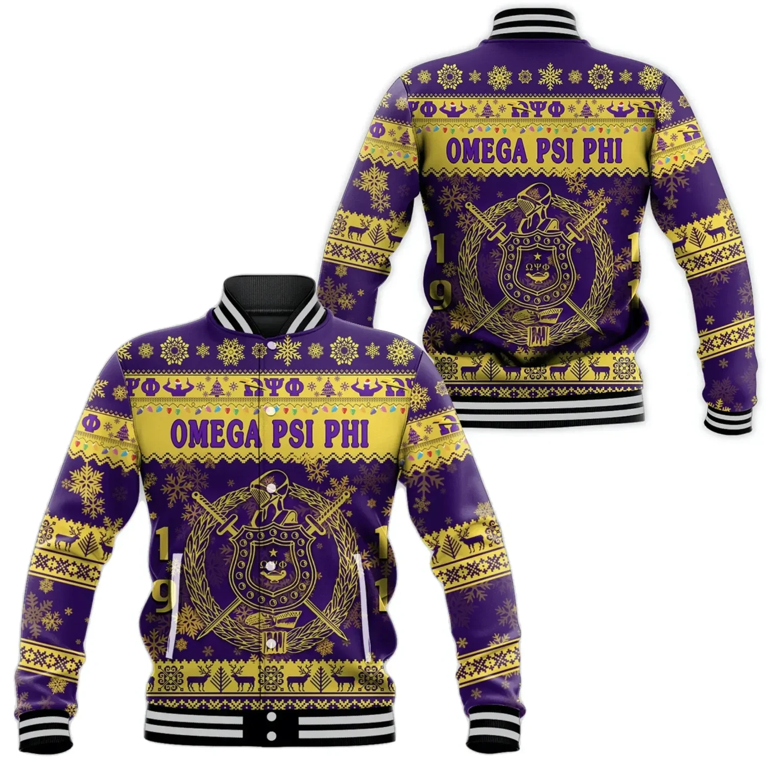 Lux Omega Psi Phi Greek Letter Christmas Baseball Jacket