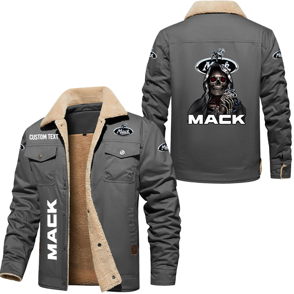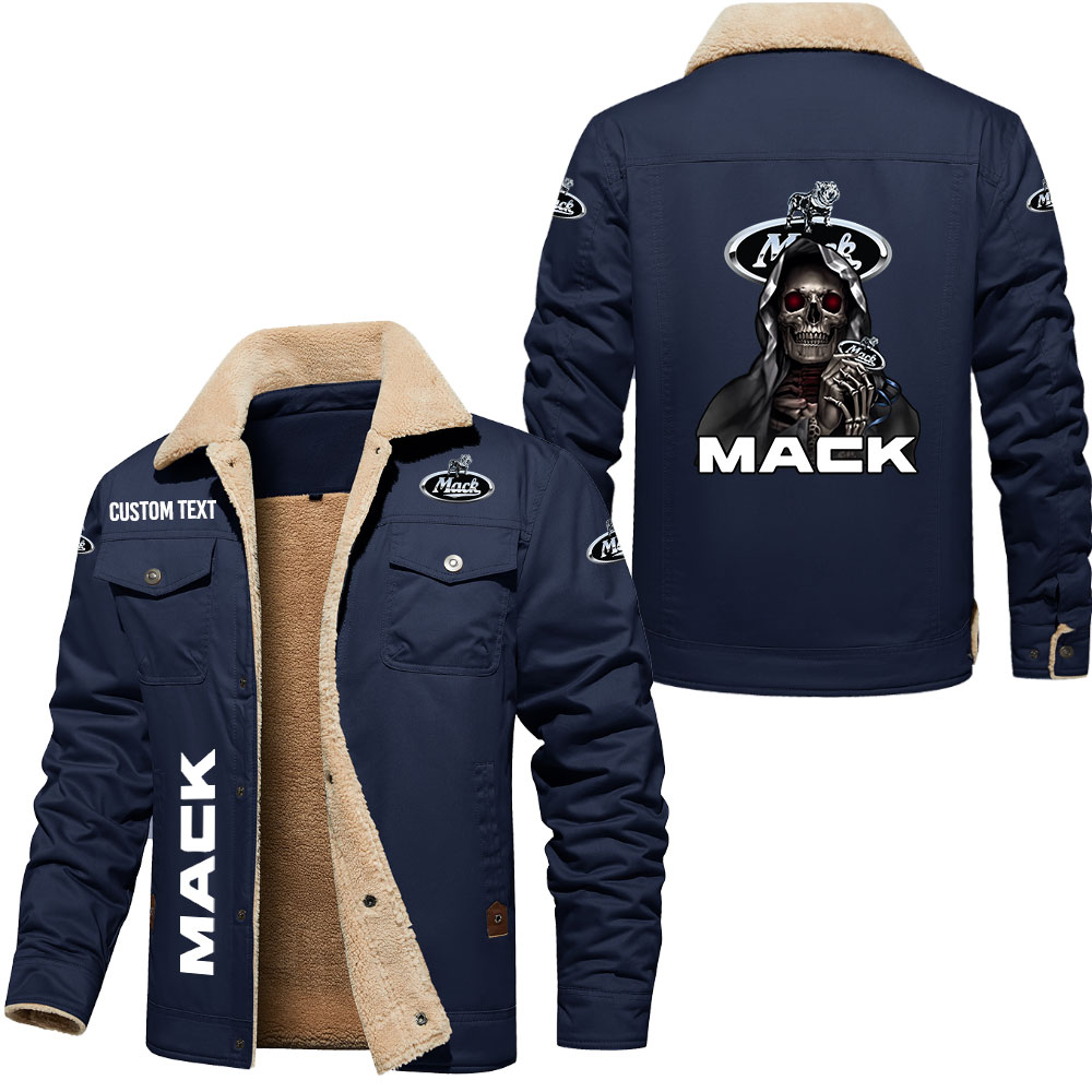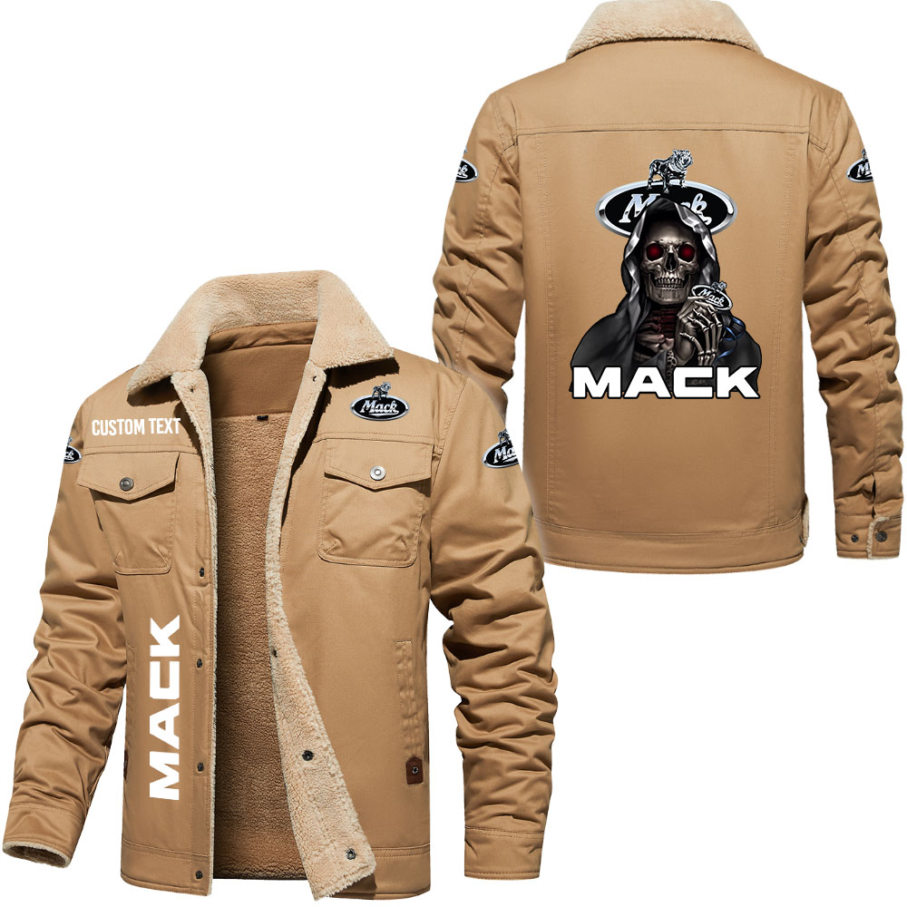 Mack Trucks Skull Art Print Custom Name Cargo Fleece Lined Cotton Jacket