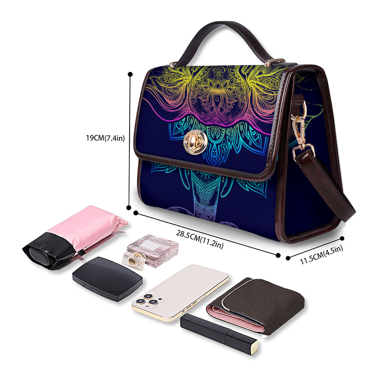 Size: 19 × 28.5 × 11.5 cm (7.4 × 11.2 × 4.5 in) — compact yet roomy enough for all your daily essentials.