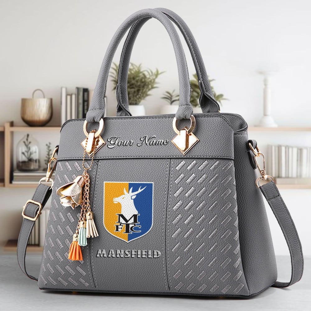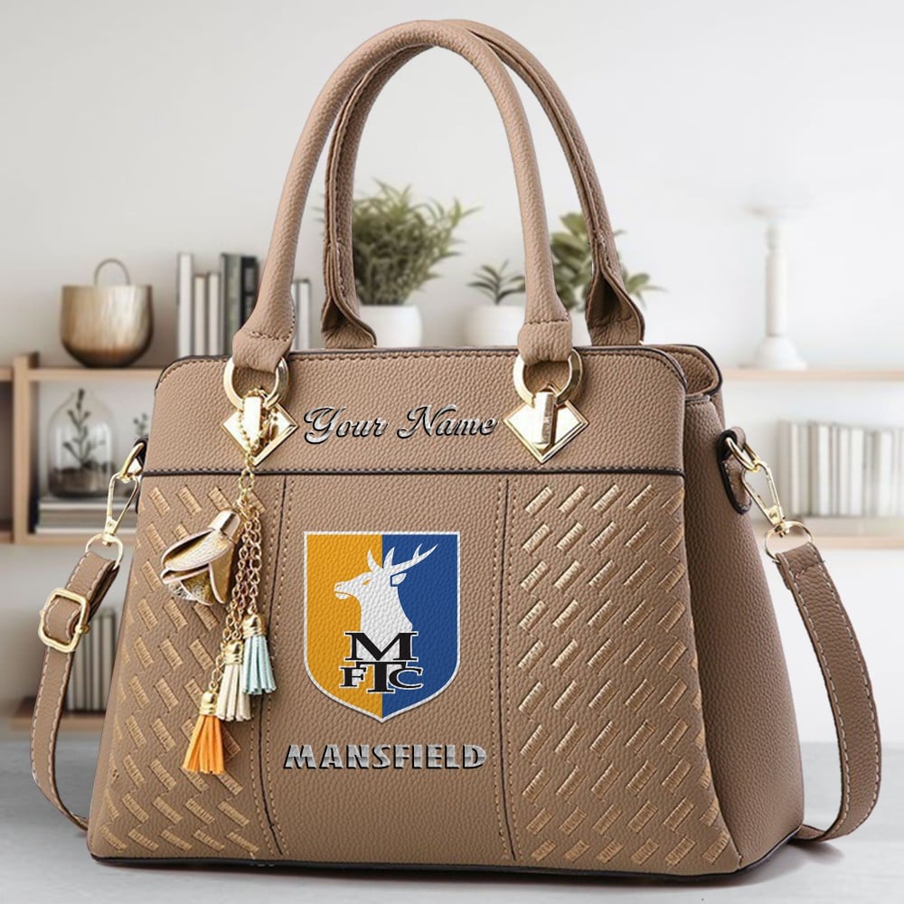 Mansfield Logo Crossbody Zip Hand Bag With Tassel Custom Name For Women