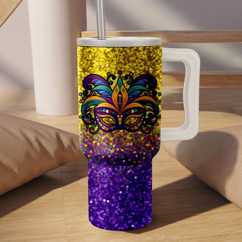 Mardi Gras Glitter Custom Stanley Quencher 40Oz Stainless Steel Tumbler With Handle