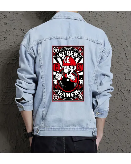 Mario Breaking Bricks Denim Jacket For Men And Women