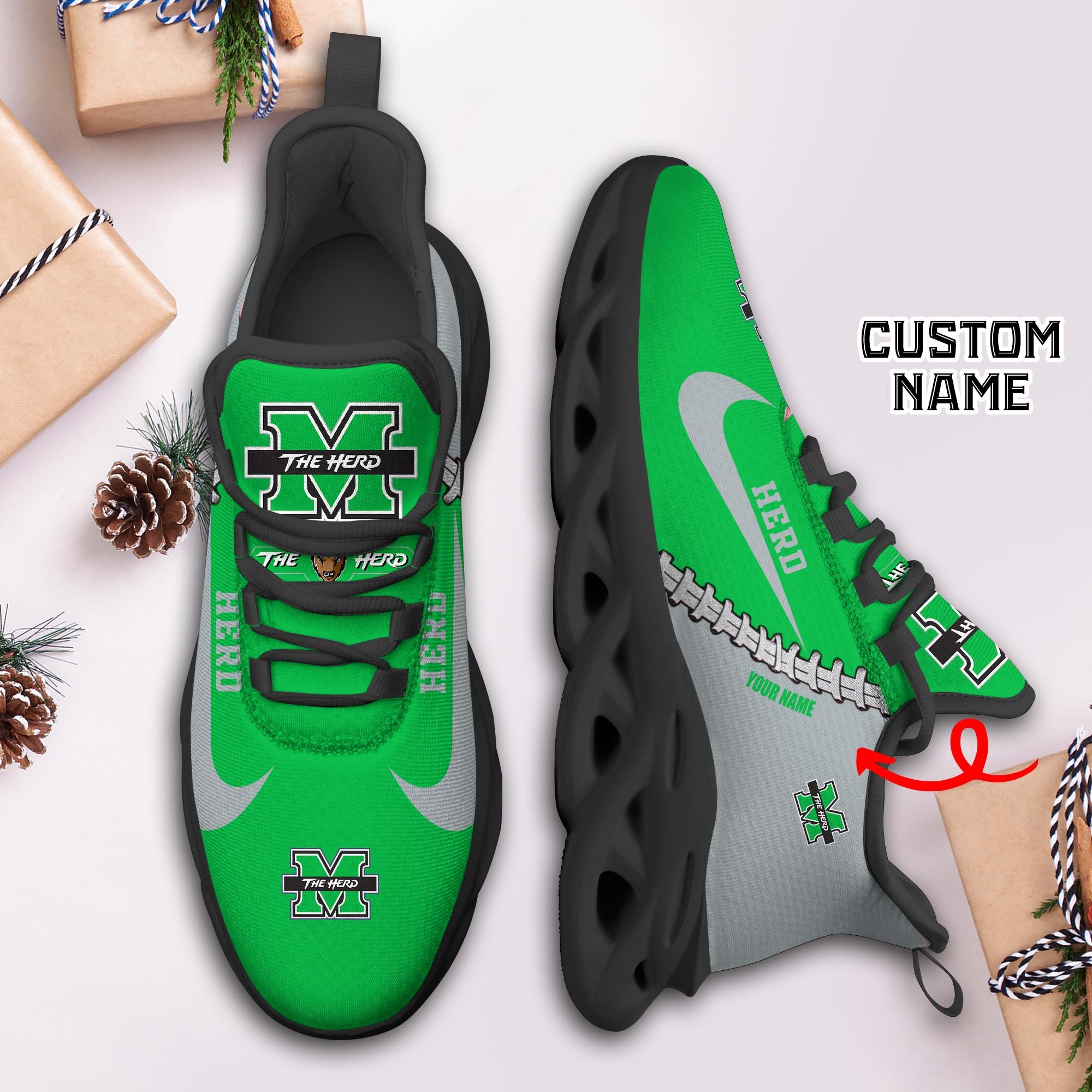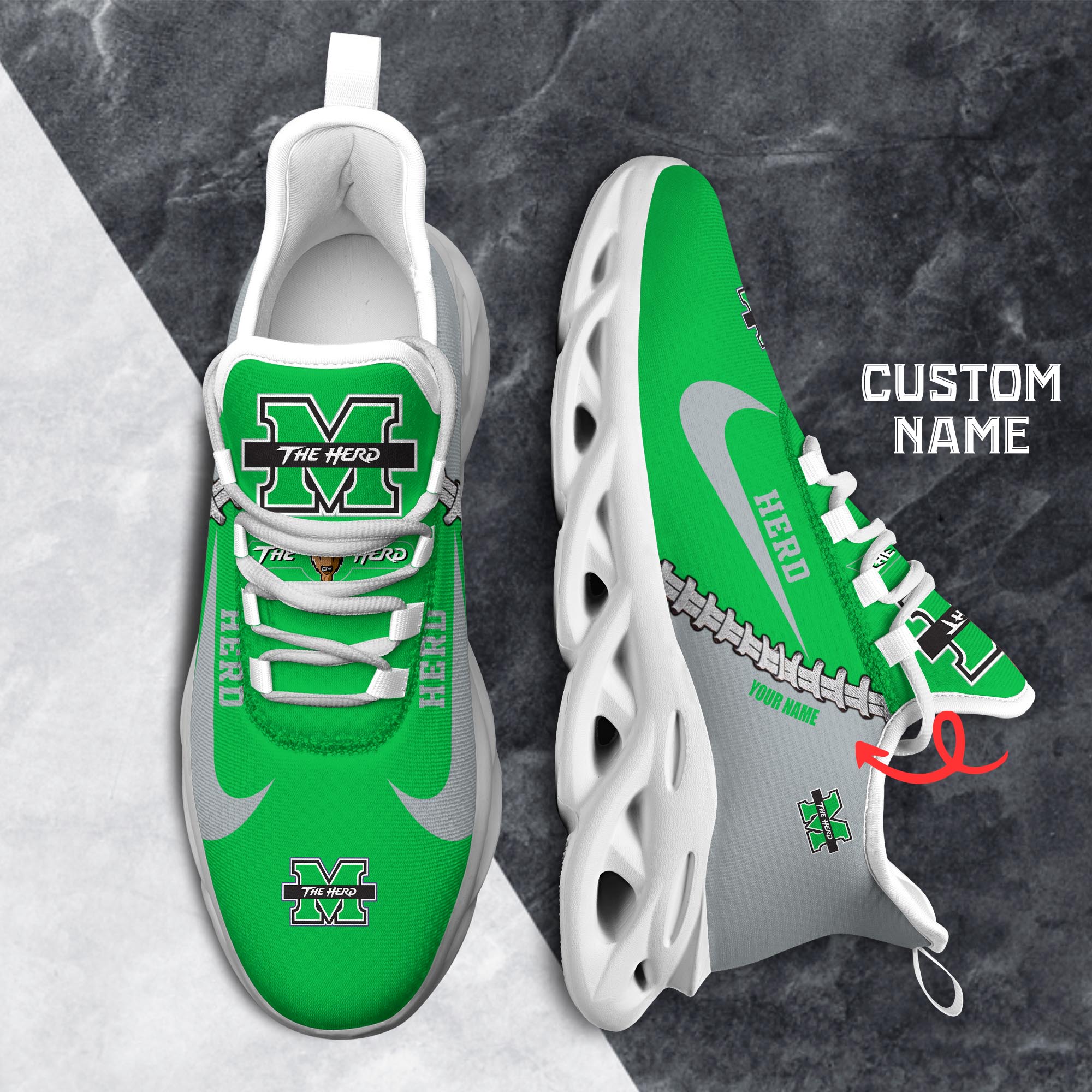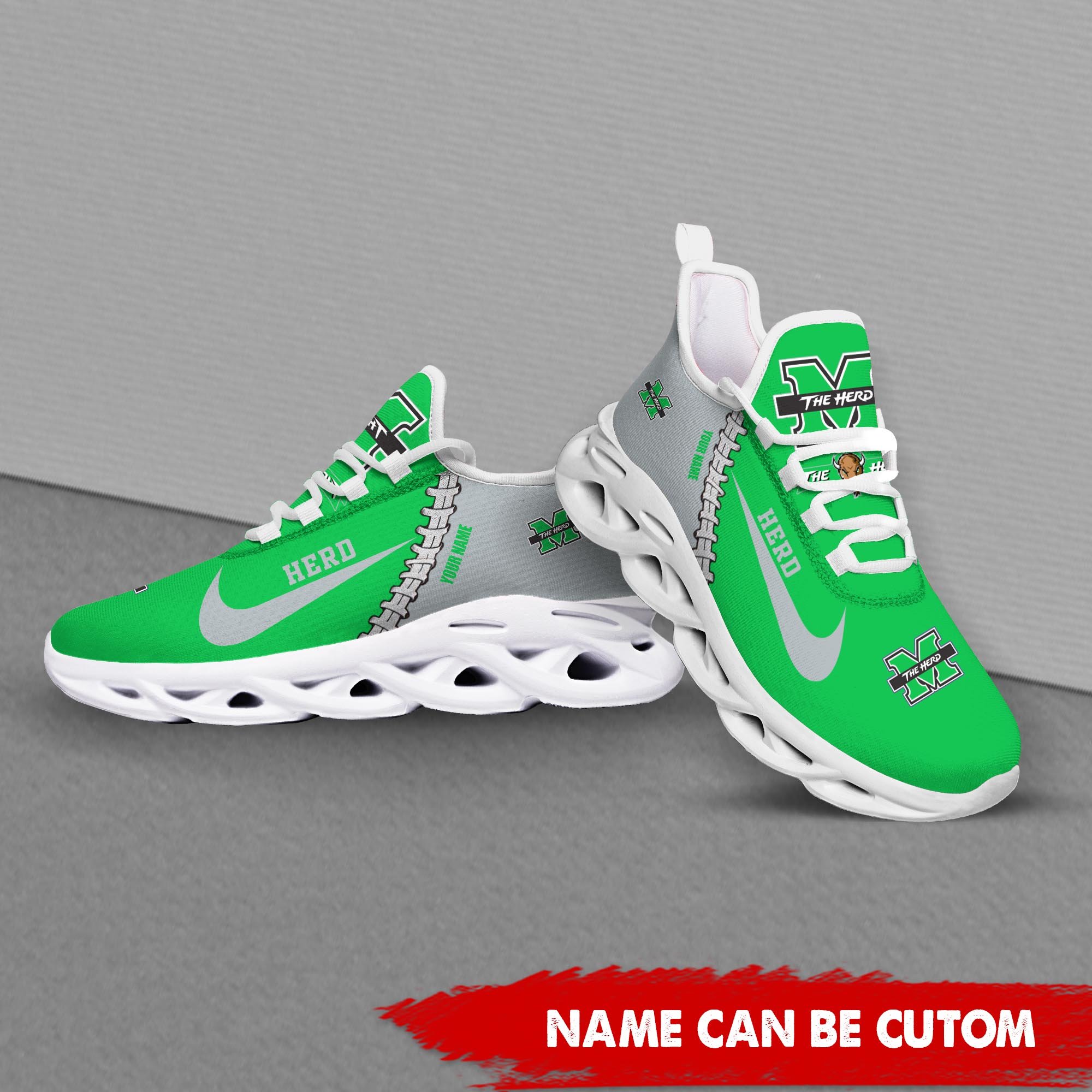 Marshall Thundering Herd Max Soul Shoes Sneakers Printed White And Black Sole For Men And Women