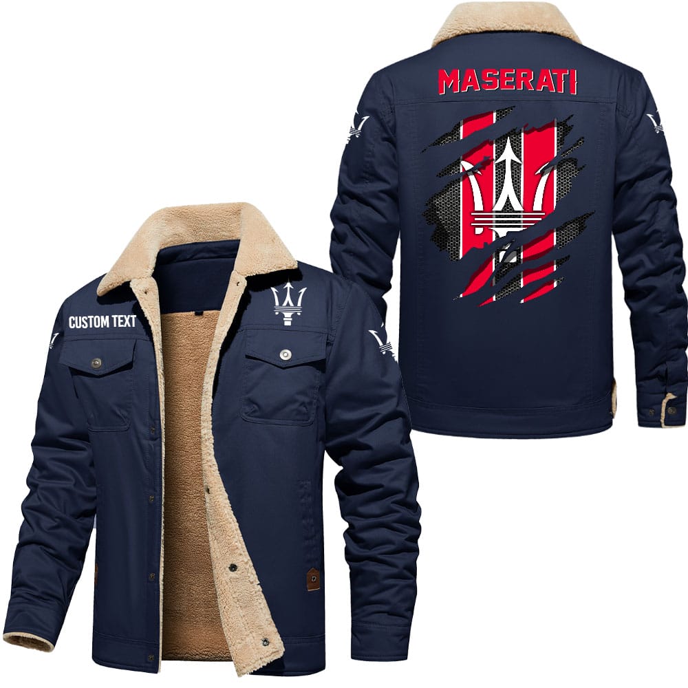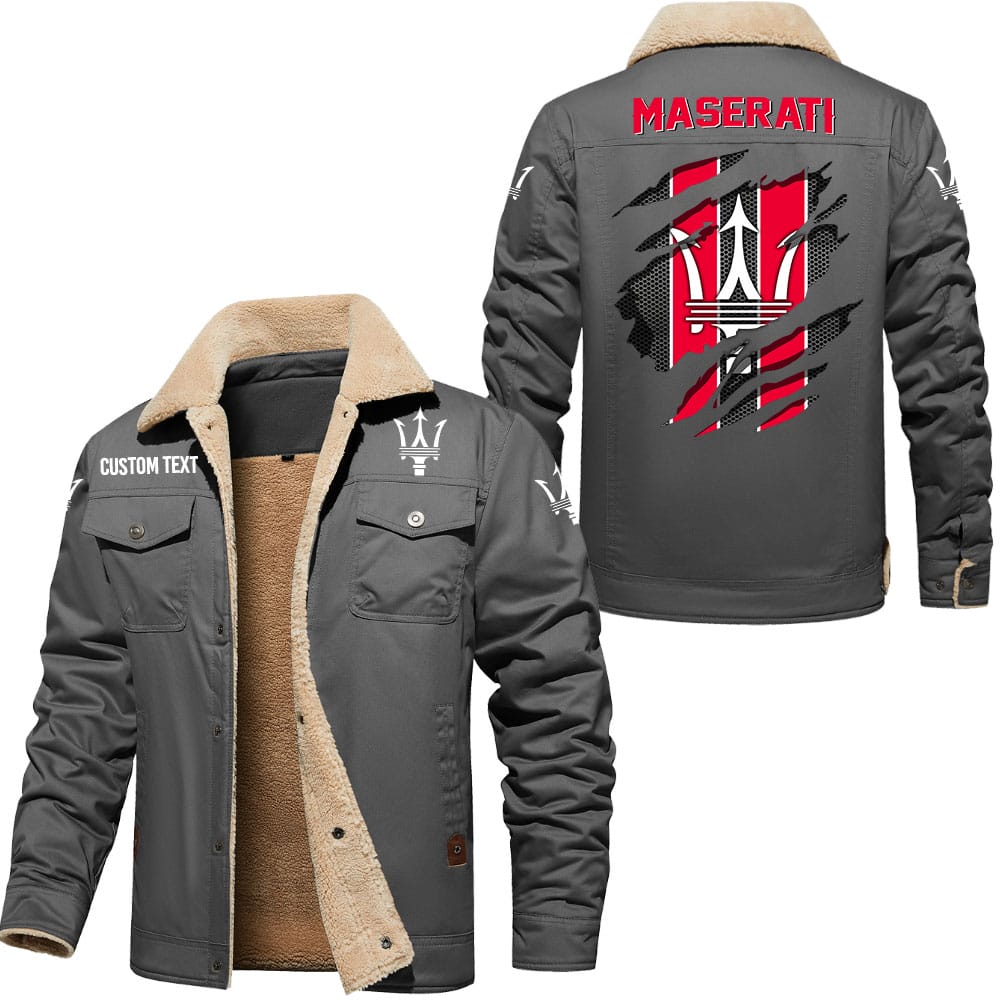 Maserati Logo Custom Name Cargo Fleece Lined Cotton Jacket