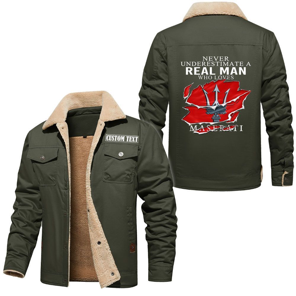 Maserati Logo Custom Name Cargo Fleece Lined Cotton Jacket A Real Man Who Loves Personalized Outerwear