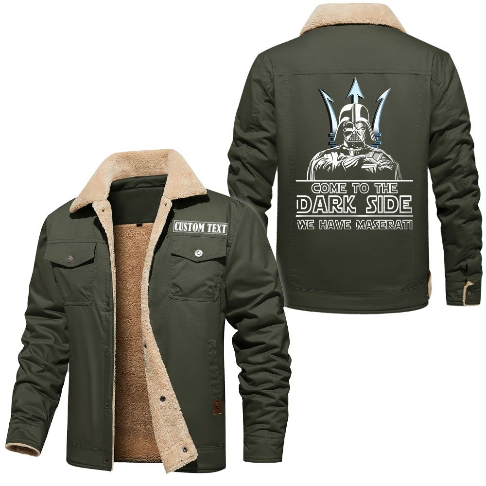 Maserati Logo Custom Name Cargo Fleece Lined Cotton Jacket Personalized Outerwear with Dark Side Star Wars Design