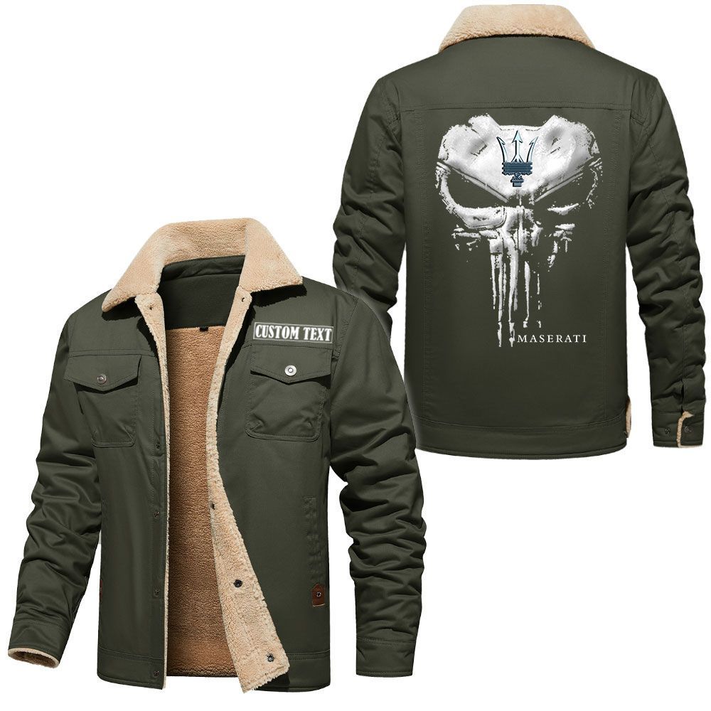 Maserati Logo Custom Name Cargo Fleece Lined Cotton Jacket Personalized Outerwear with Punisher Skull Design