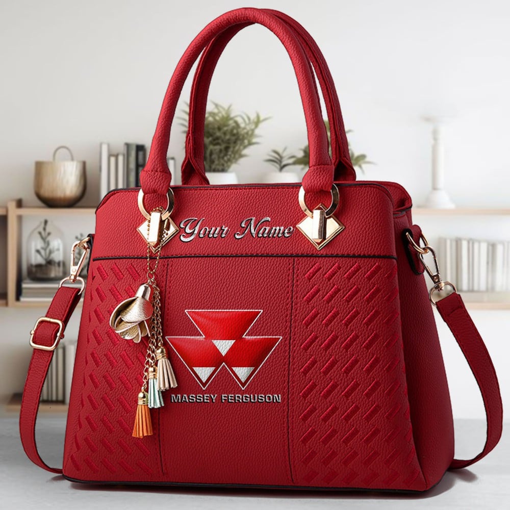 Massey Ferguson Logo Crossbody Zip Hand Bag With Tassel Custom Name For Women
