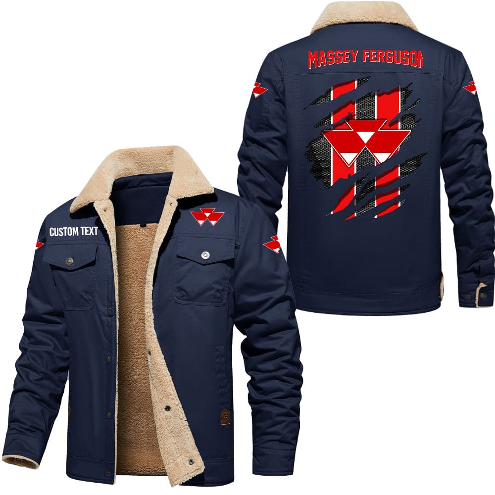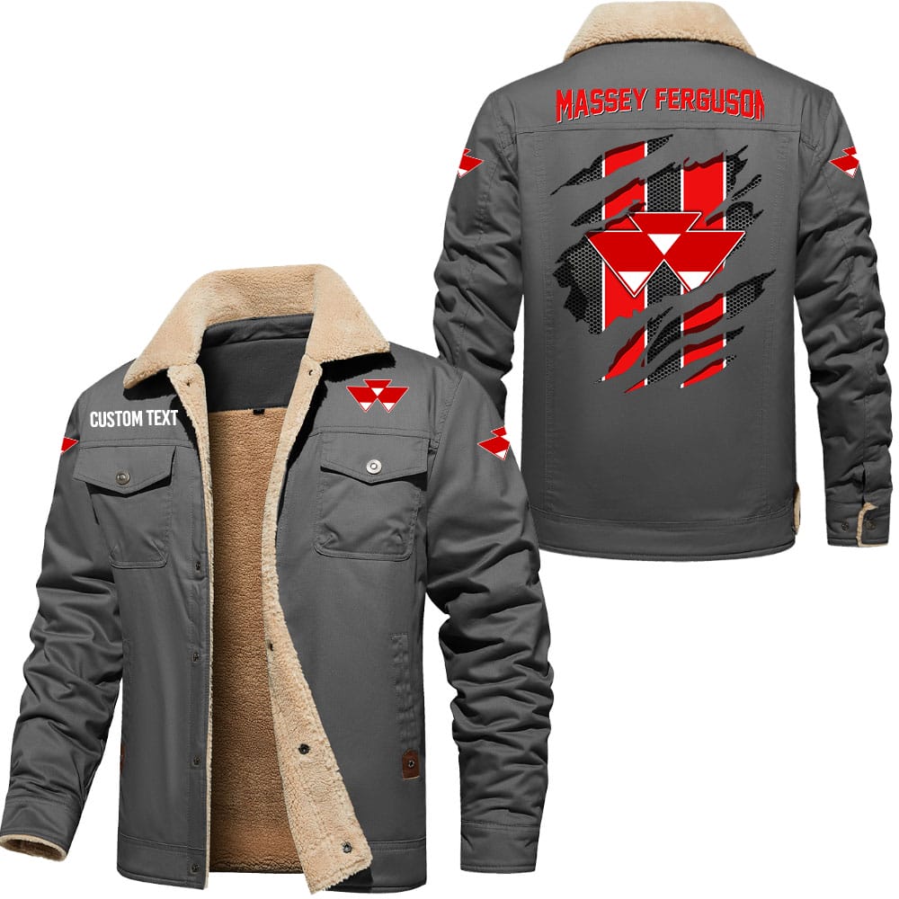 Massey Ferguson Logo Custom Name Cargo Fleece Lined Cotton Jacket