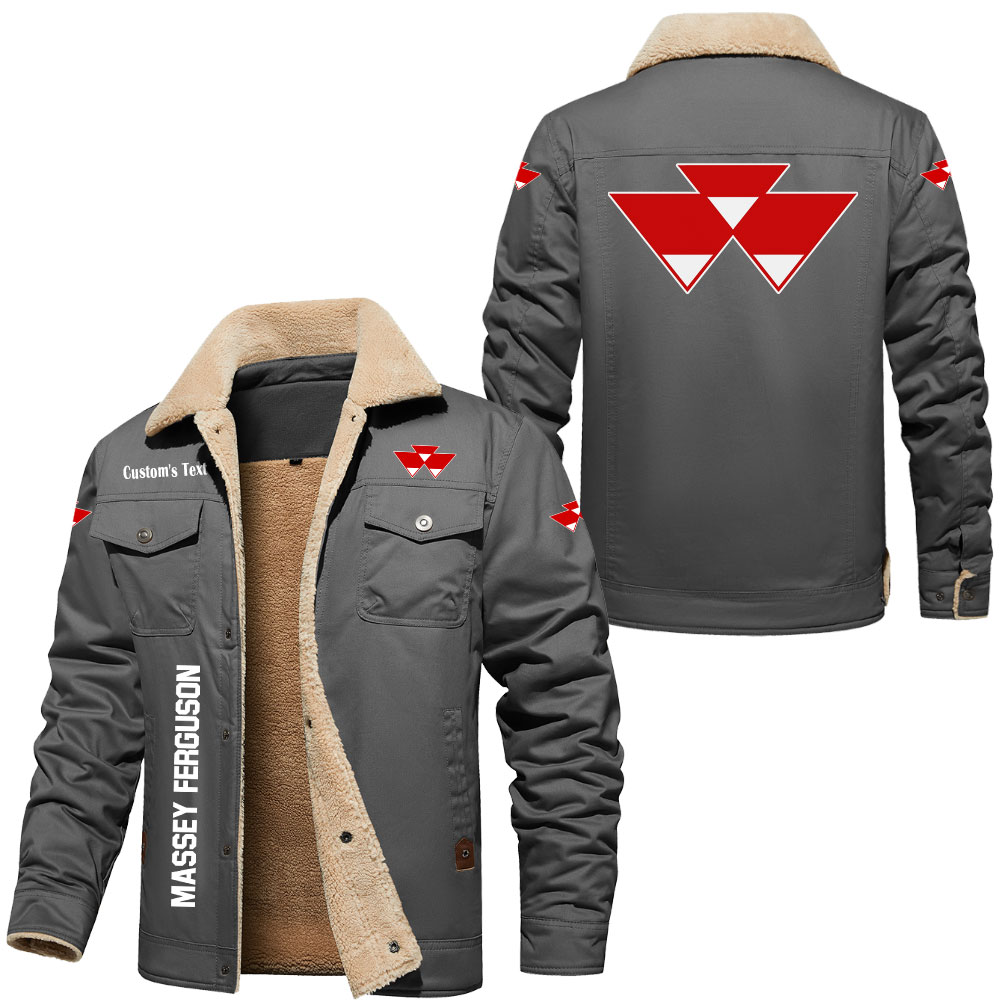 Massey Ferguson Logo Custom Text Cargo Fleece Lined Cotton Jacket