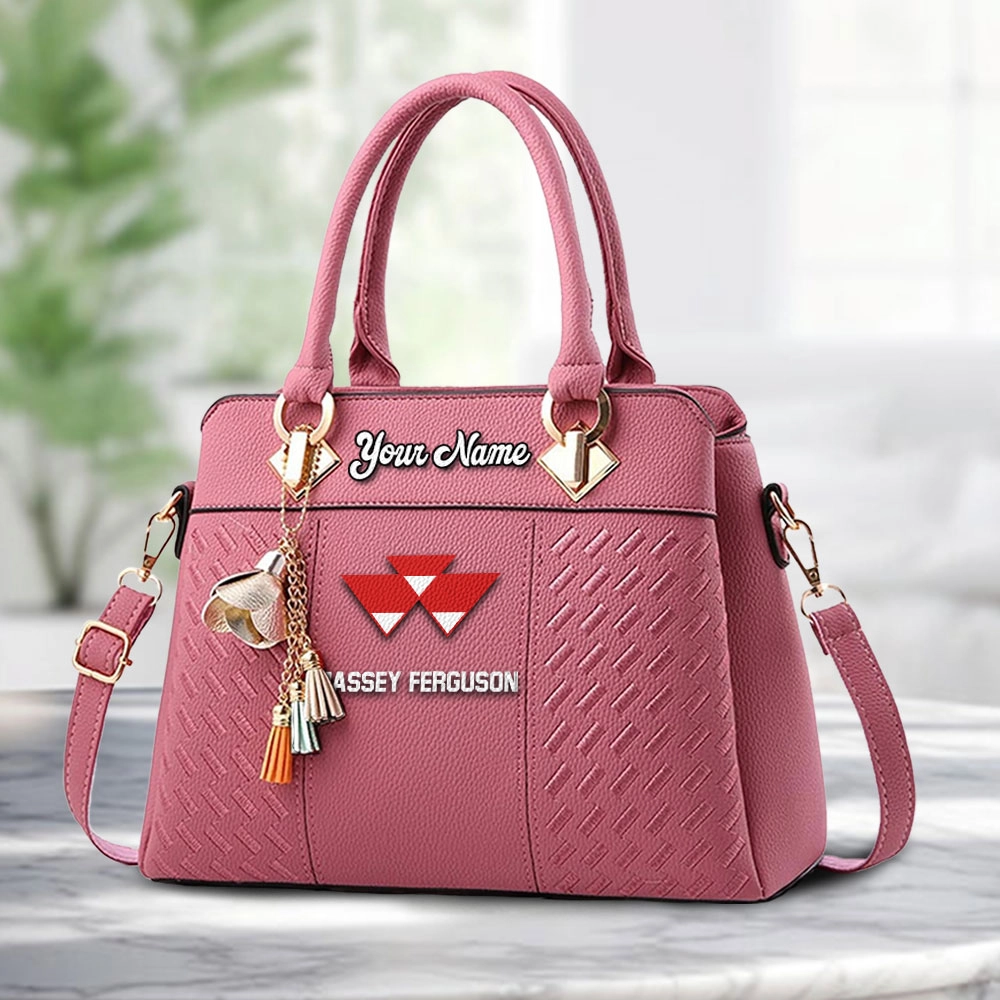 Massey Ferguson Logo Personalized PU Leather Handbag Custom Name For Women