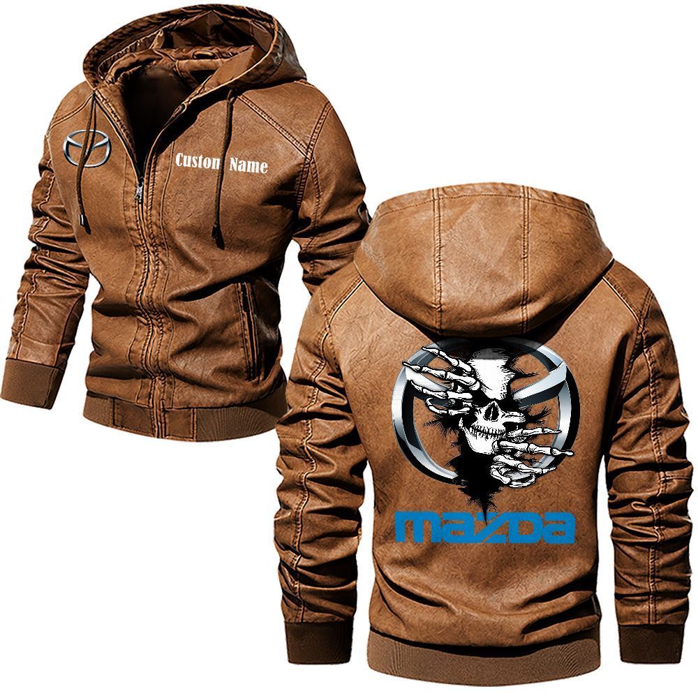Mazda Custom Name Skull Biker Car Driver Personalized Leather Jacket For Men Women