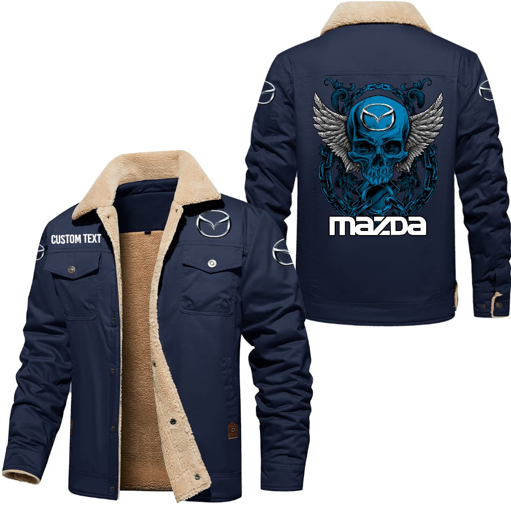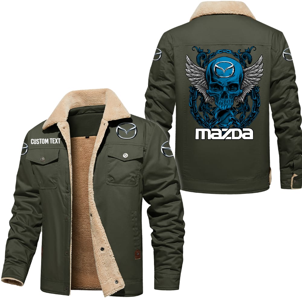 Mazda Custom Name Skull Design Cargo Fleece Lined Cotton Jacket