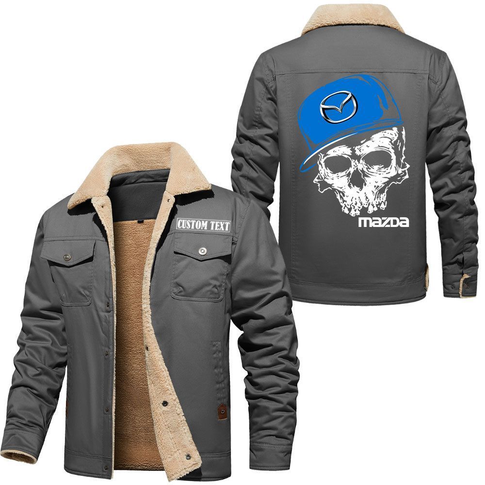 Mazda Logo Custom Name Cargo Fleece Lined Cotton Jacket Personalized Outerwear with Skull Design