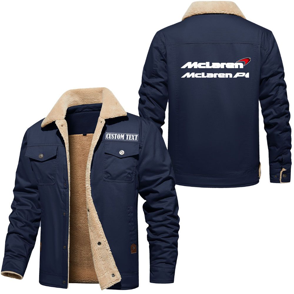 McLaren P1 Logo Custom Name Cargo Fleece Lined Cotton Jacket Stylish Warm Personalized Outerwear