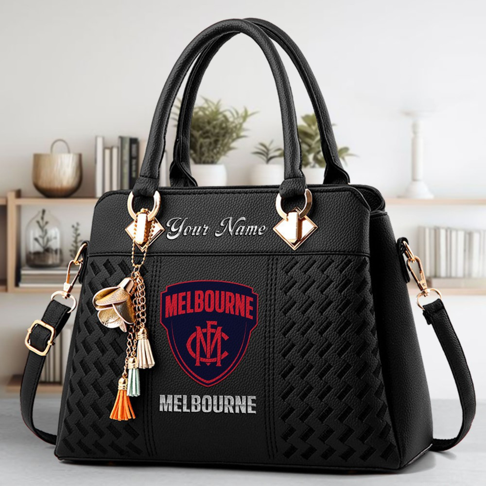 Melbourne Football Club Logo Crossbody Zip Hand Bag With Tassel Custom Name For Women
