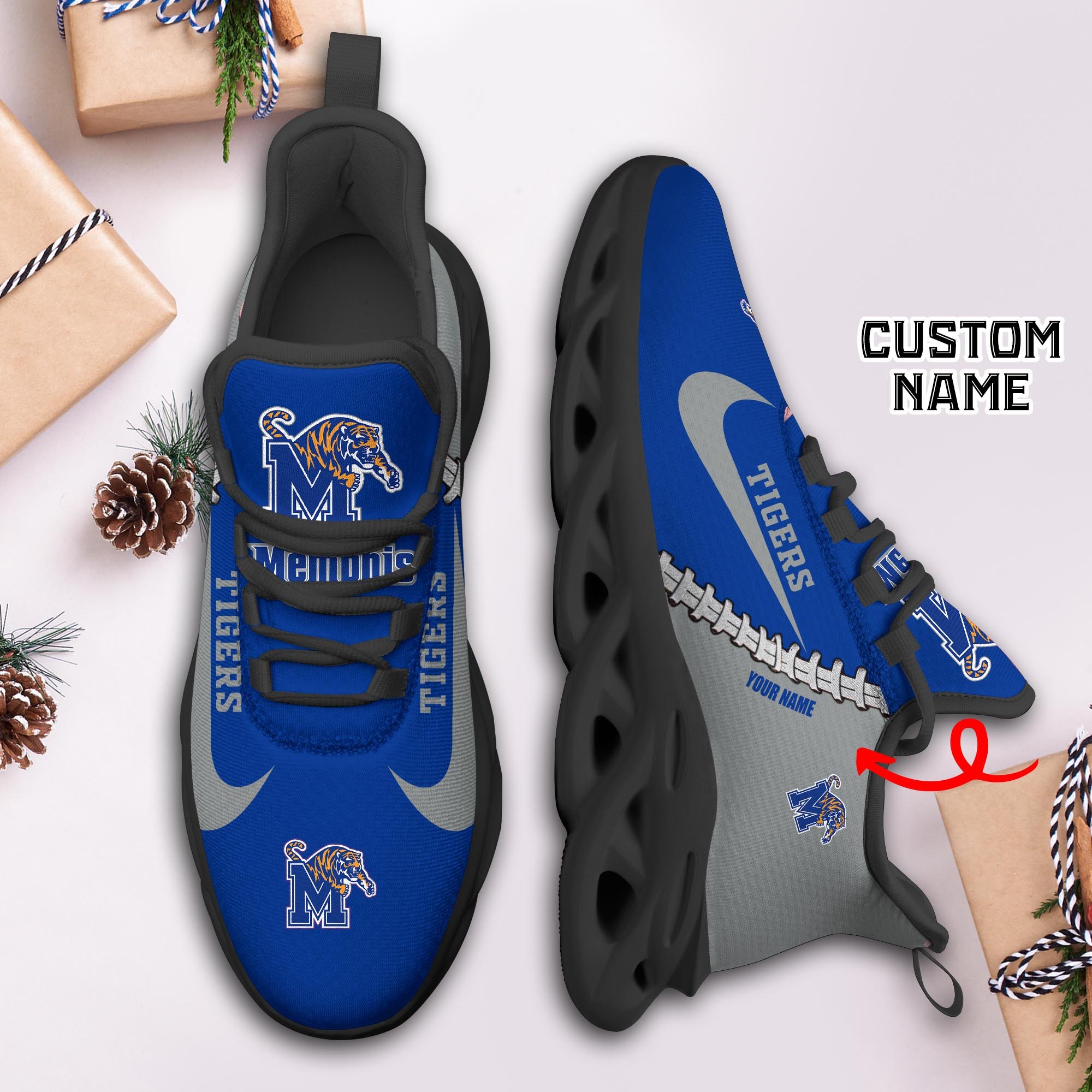Memphis Tigers Max Soul Shoes Sneakers Printed White And Black Sole For Men And Women