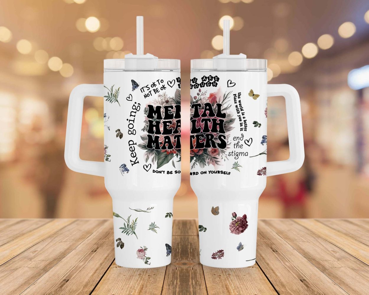 Mental Health Awareness Custom Stanley Quencher 40Oz Stainless Steel Tumbler With Handle