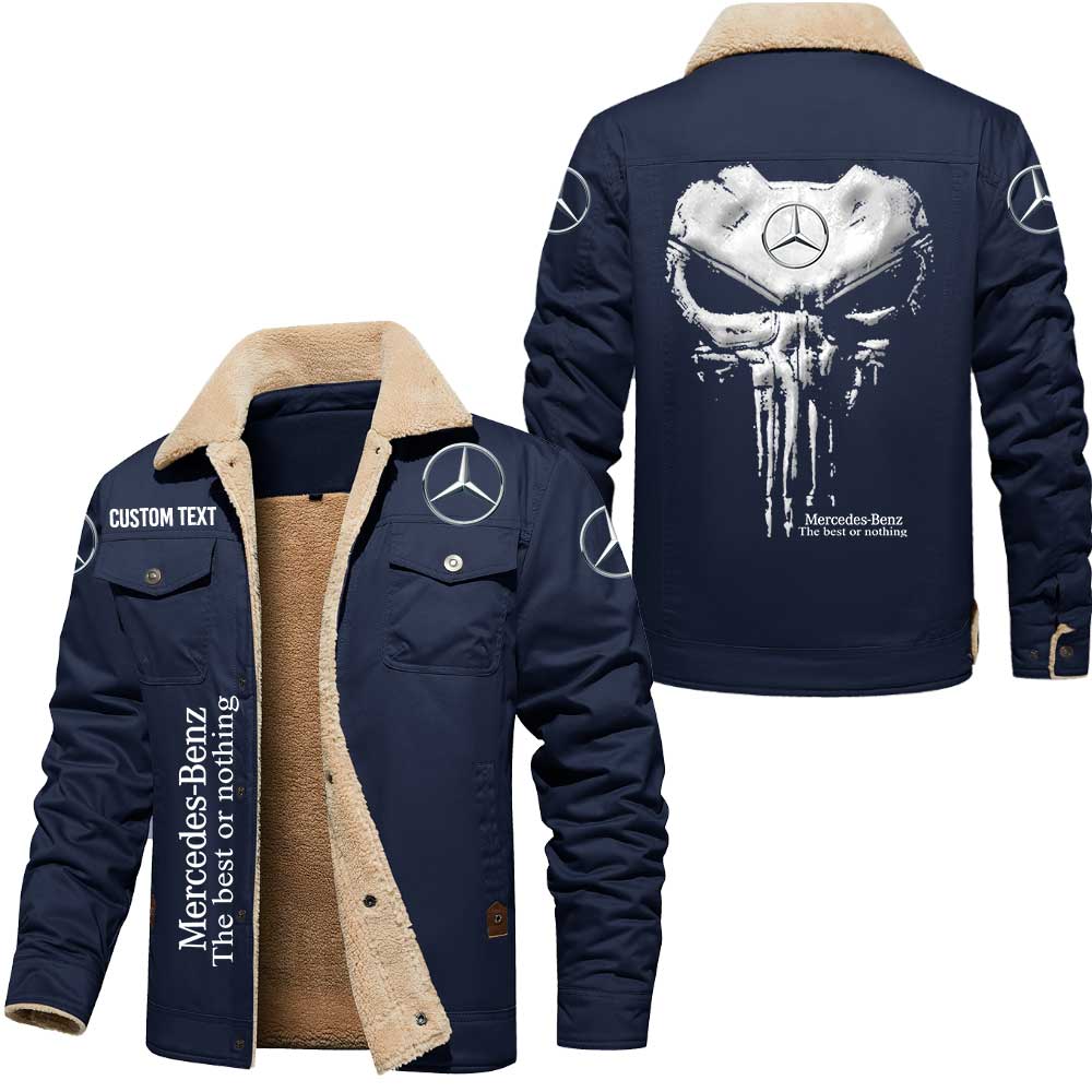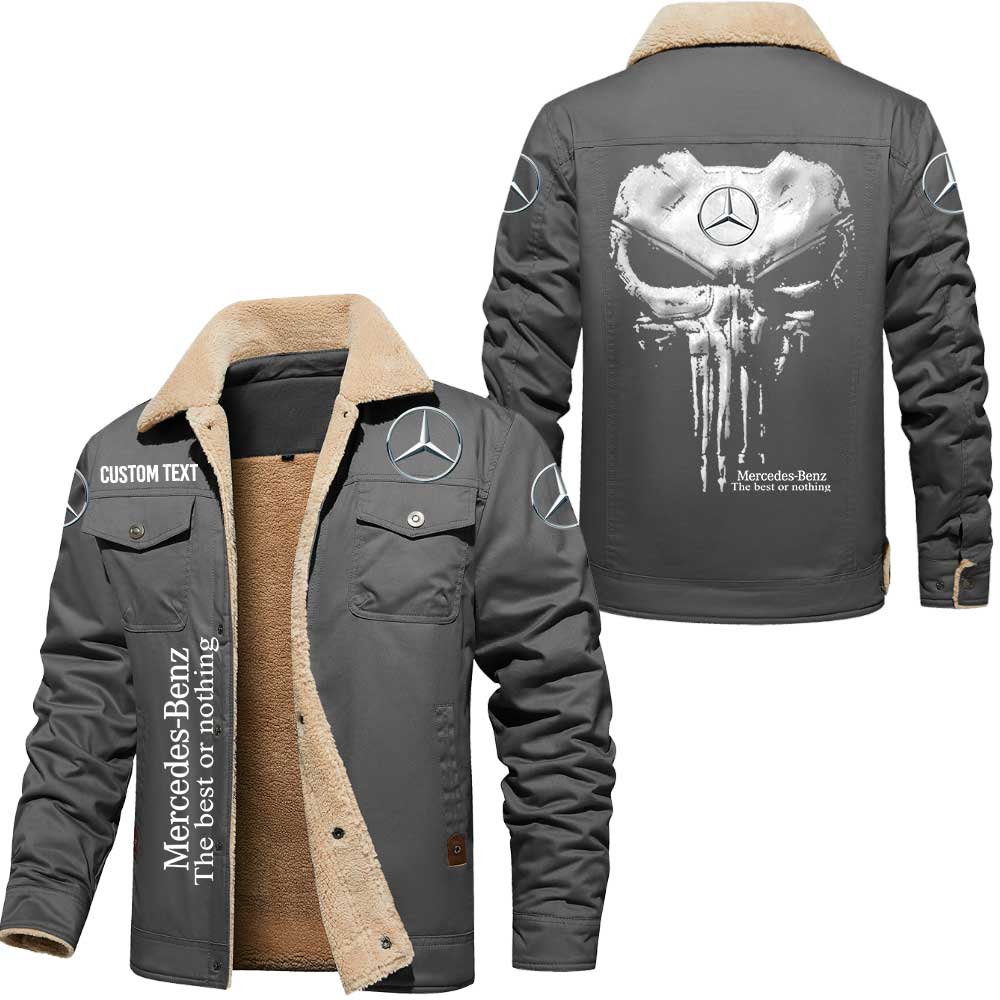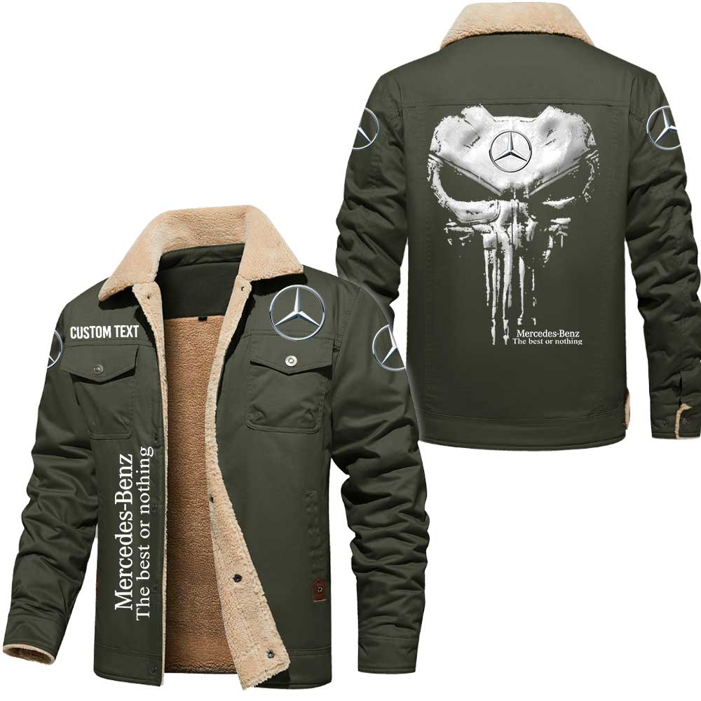 Mercedes Logo Skull Design Custom Text Cargo Fleece Lined Cotton Jacket