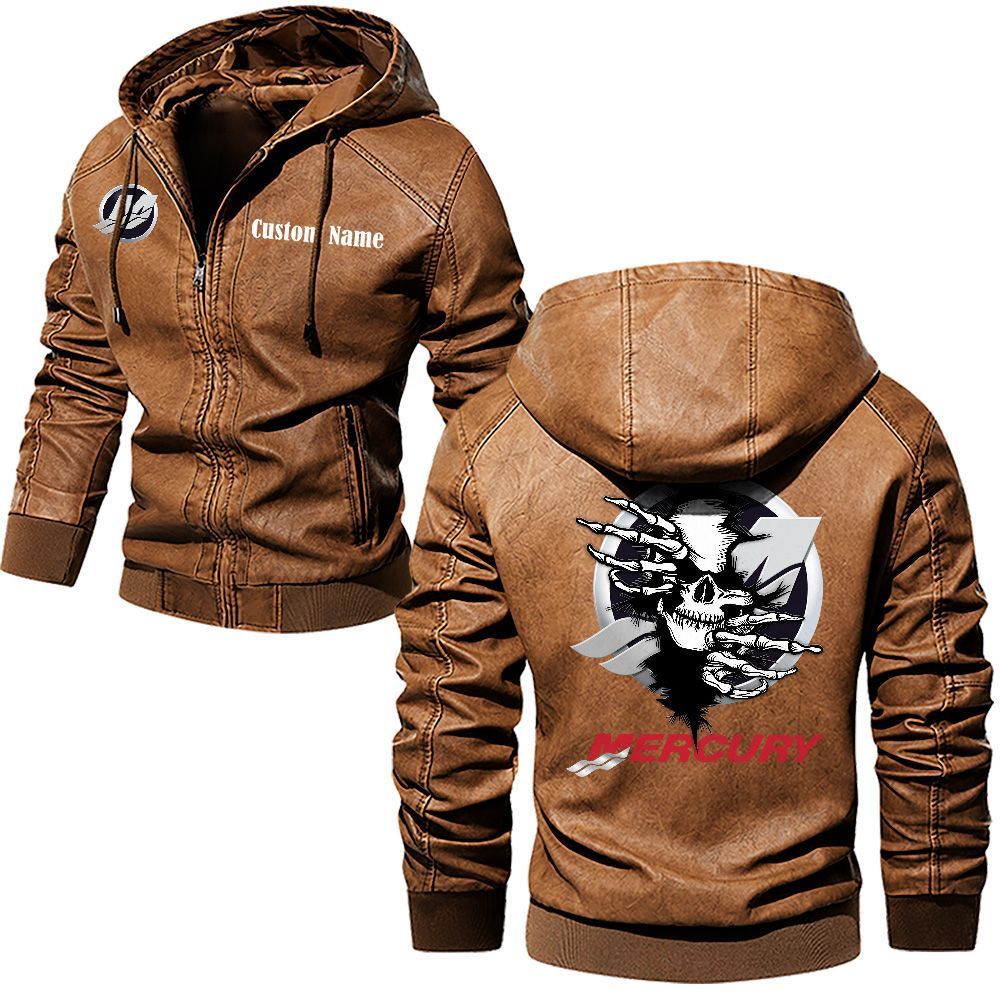 Mercury Marine Custom Name Skull Biker Car Driver Personalized Leather Jacket For Men Women