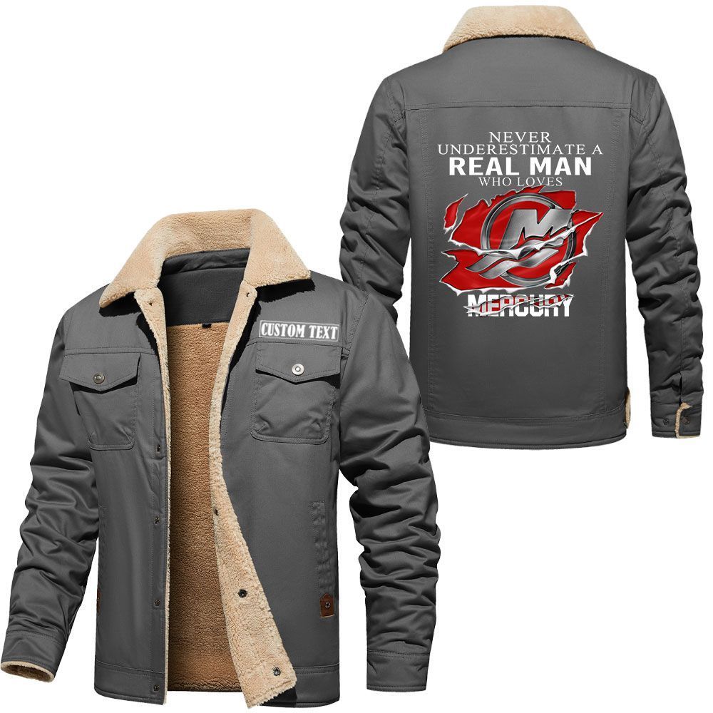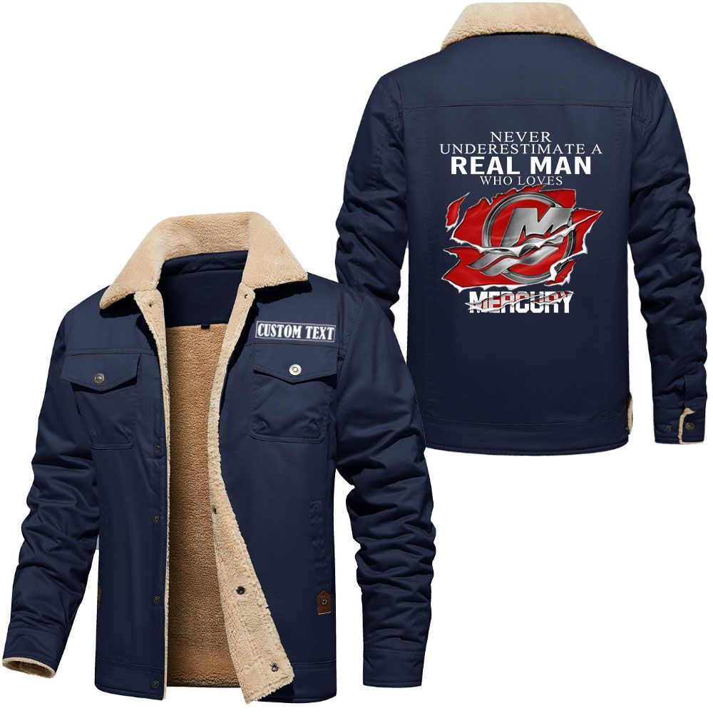 Mercury Marine Logo Custom Name Cargo Fleece Lined Cotton Jacket A Real Man Who Loves Personalized Outerwear
