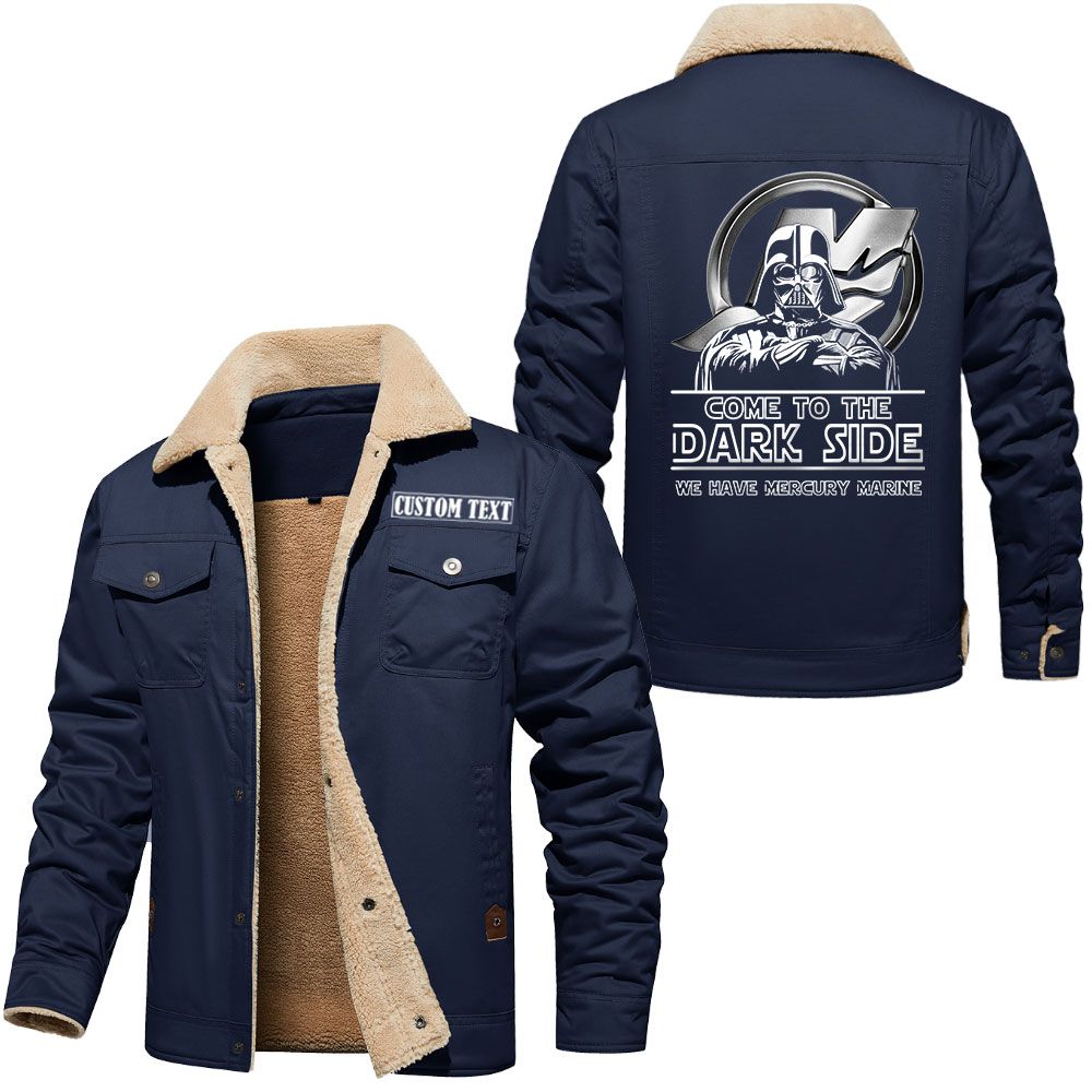 Mercury Marine Logo Custom Name Cargo Fleece Lined Cotton Jacket Personalized Outerwear with Dark Side Star Wars Design