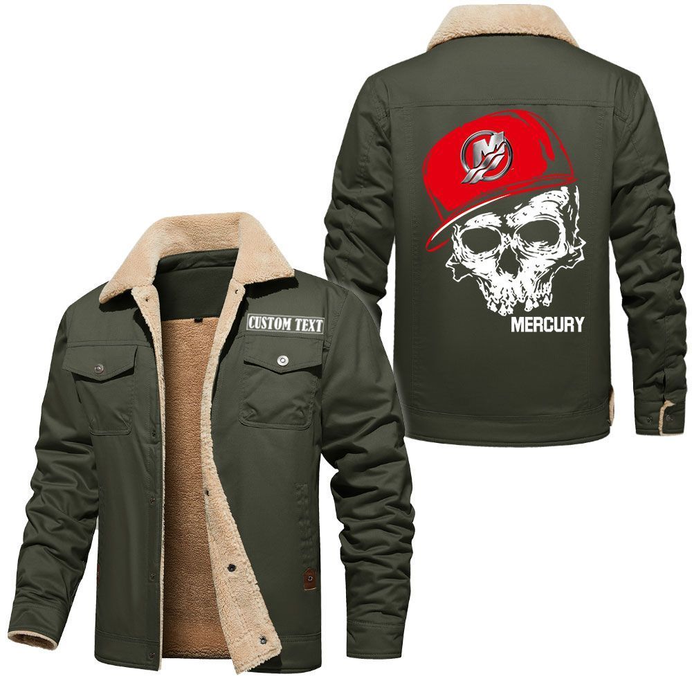 Mercury Marine Logo Custom Name Cargo Fleece Lined Cotton Jacket Personalized Outerwear with Skull Design