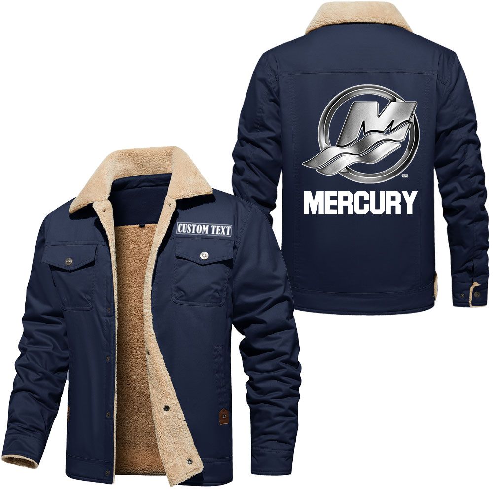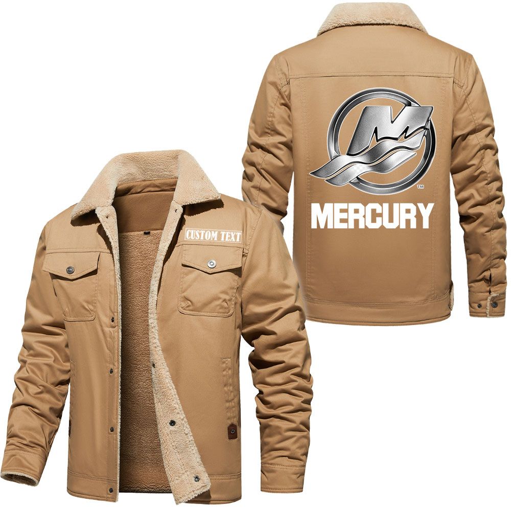 Mercury Marine Logo Custom Name Cargo Fleece Lined Cotton Jacket Stylish Warm Personalized Outerwear