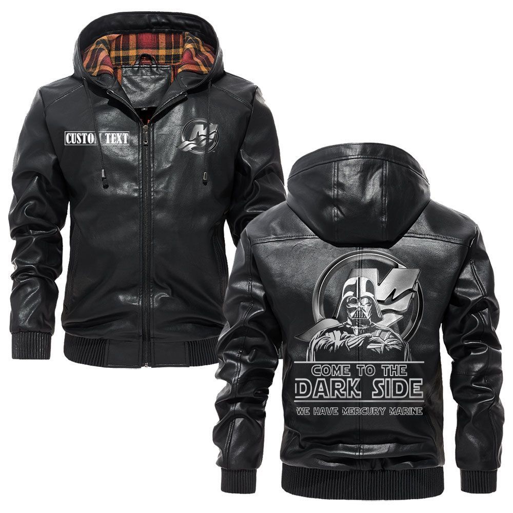 Mercury Marine Logo Custom Name Leather Hoodie Jacket Warm Outerwear with Star Wars Theme