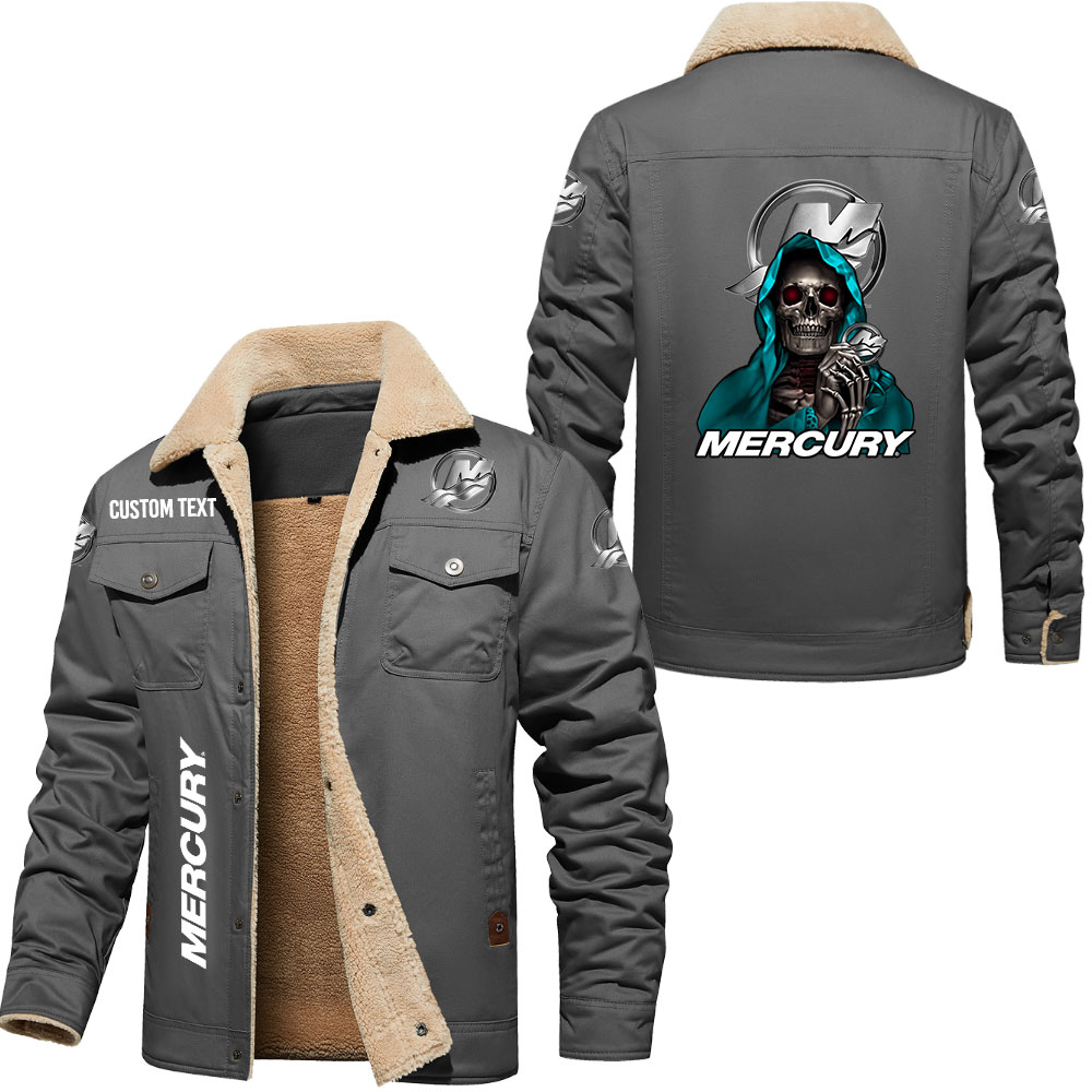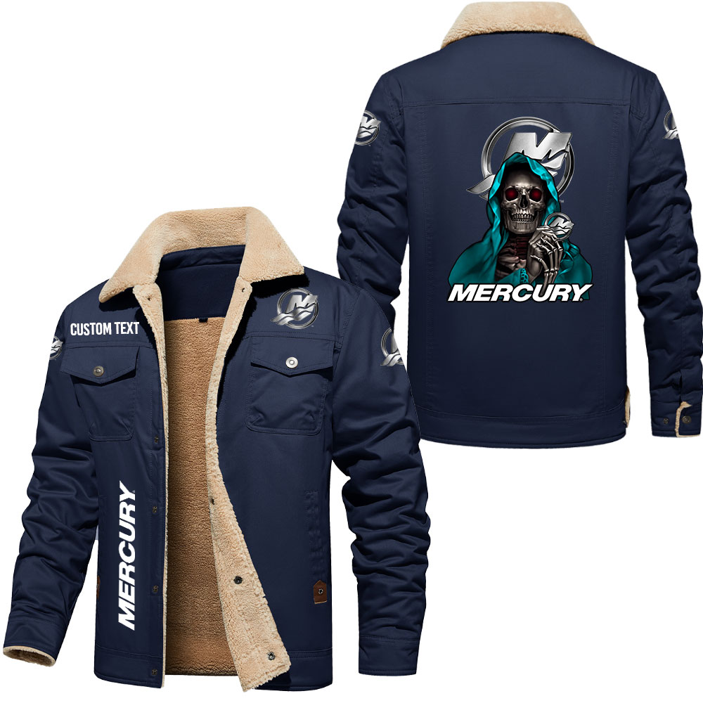 Mercury Marine Skull Art Print Custom Name Cargo Fleece Lined Cotton Jacket