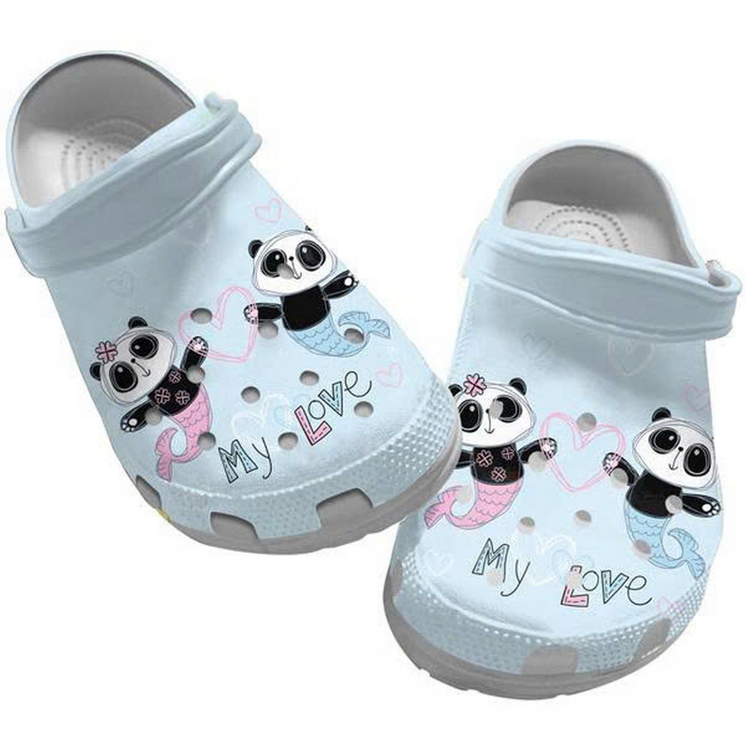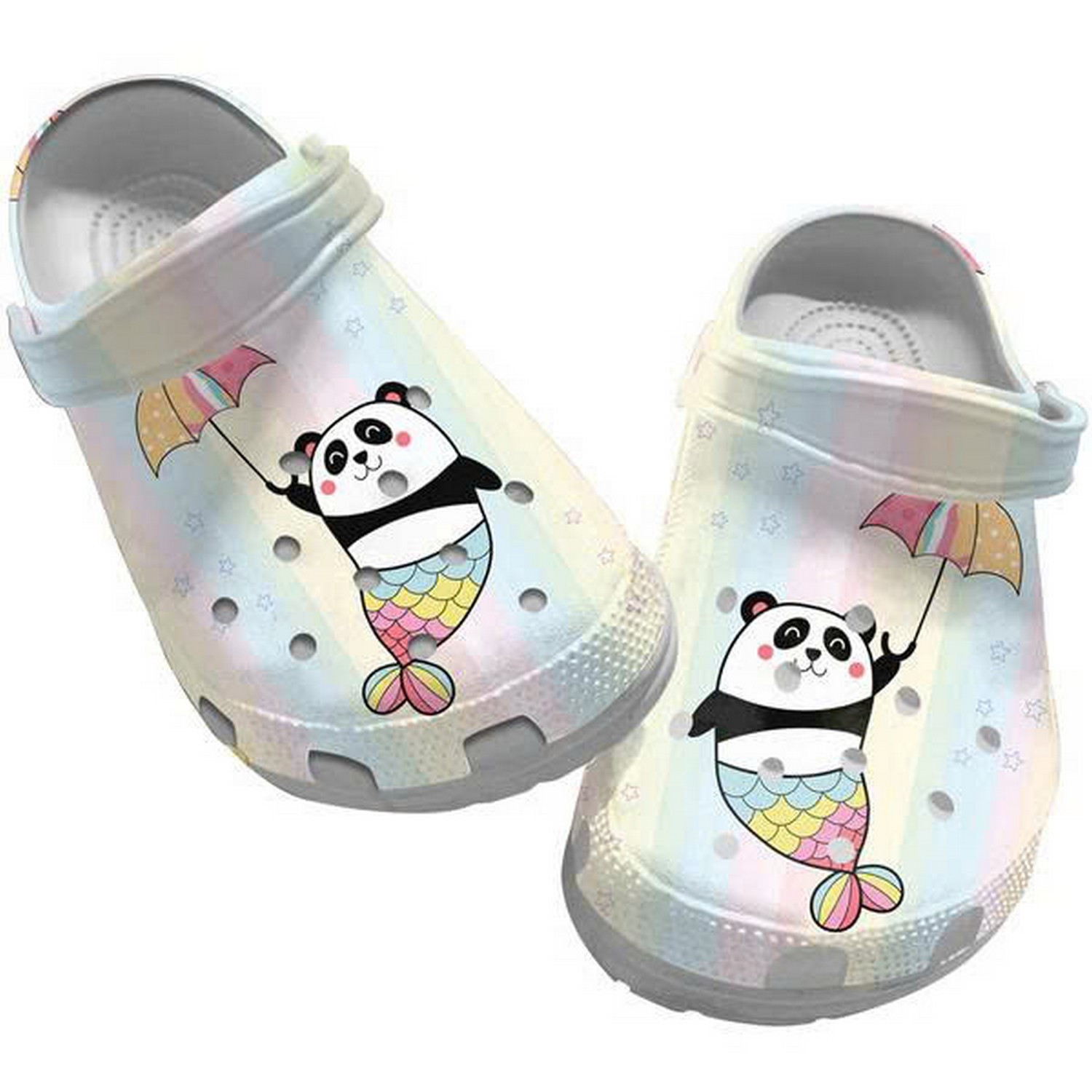 Mermaid Panda Cute Sticker Flying With Colorful Bubble Clogs For Kids And Adults