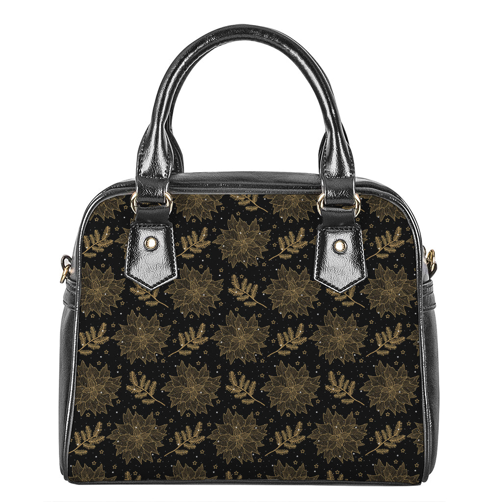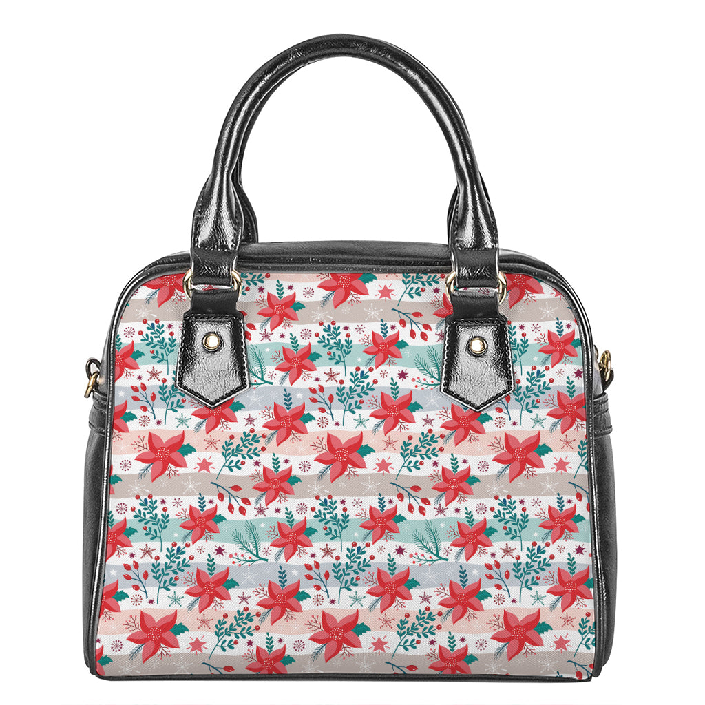 Merry Christmas Poinsettia Pattern Print Shoulder Handbag