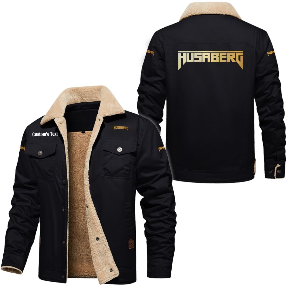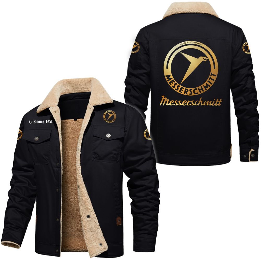 Messerschmitt Golden Logo Custom Cargo Fleece Lined Cotton Jacket Black