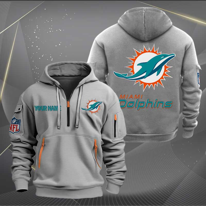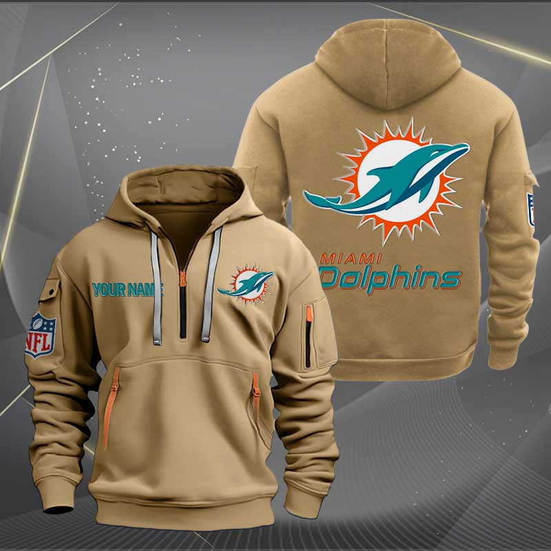 Miami Dolphins Logo Quarter Zip Hoodie Custom Collection