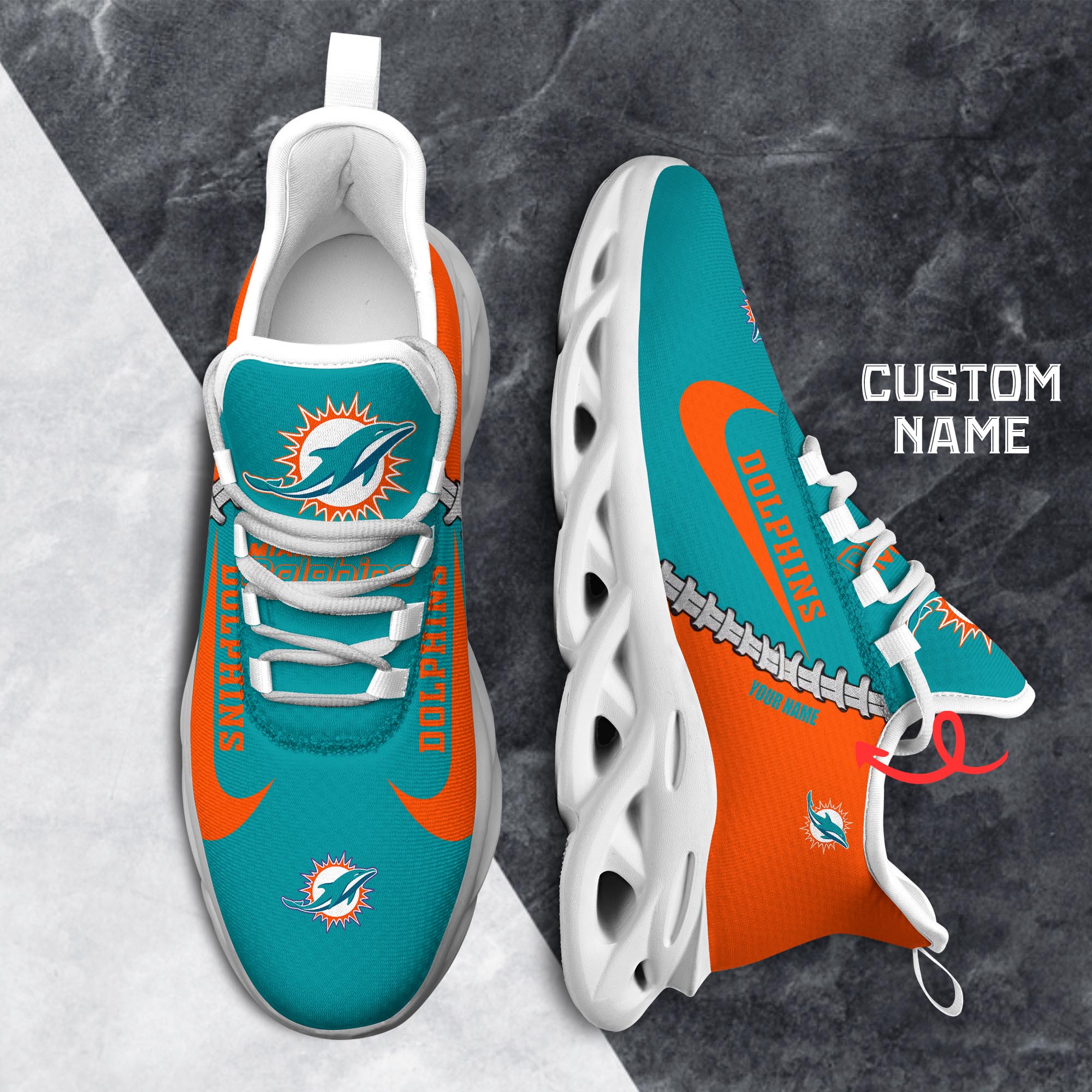 Miami Dolphins Max Soul Shoes Sneakers Printed White And Black Sole For Men And Women