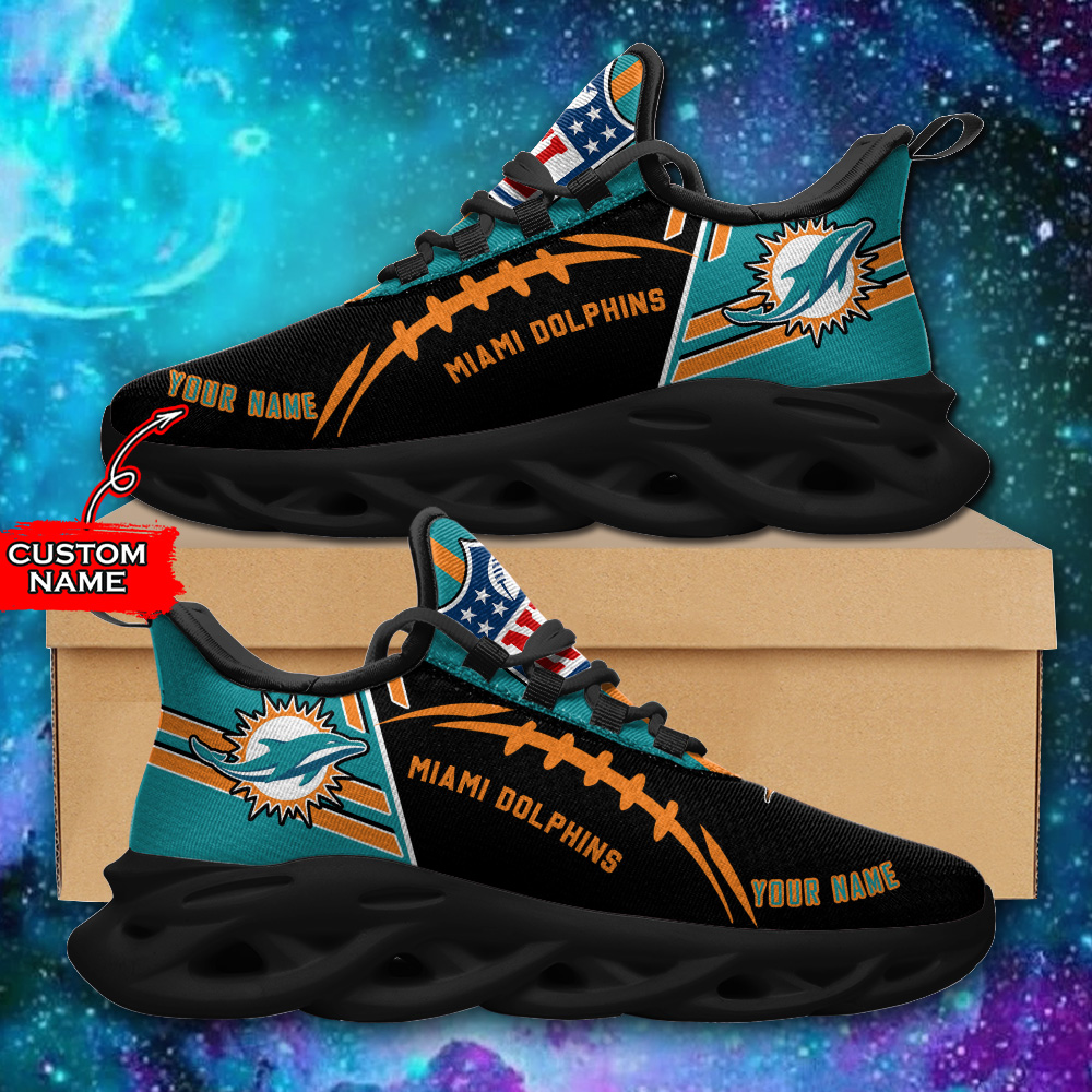 Miami Dolphins Max Soul Shoes Sneakers Printed White And Black Sole For Men And Women