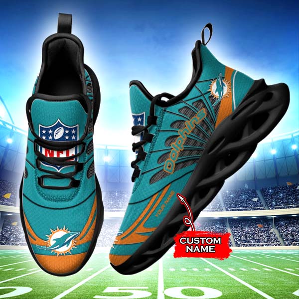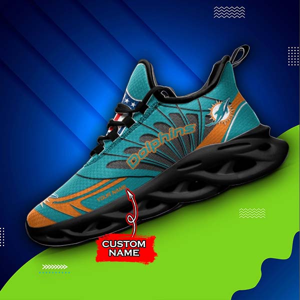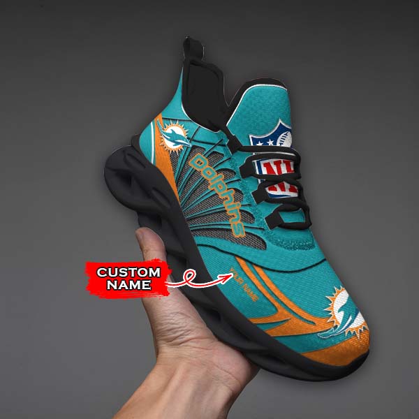 Miami Dolphins Max Soul Shoes Sneakers Printed White And Black Sole For Men And Women