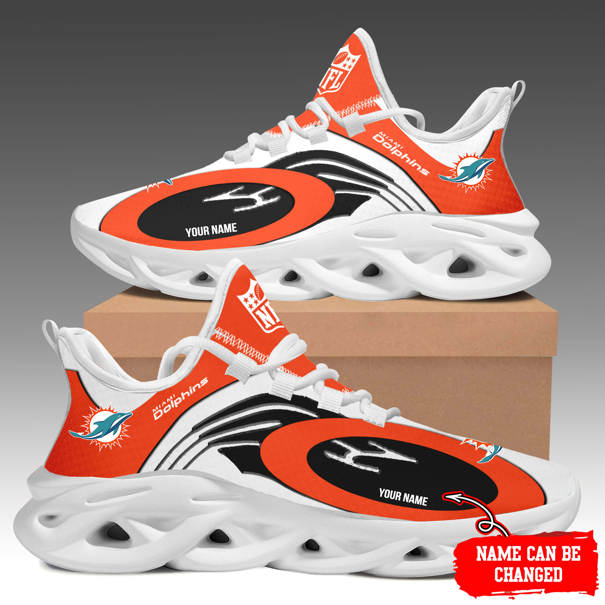 Miami Dolphins Max Soul Shoes Sneakers Printed White And Black Sole For Men And Women