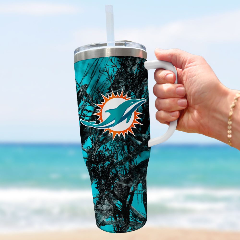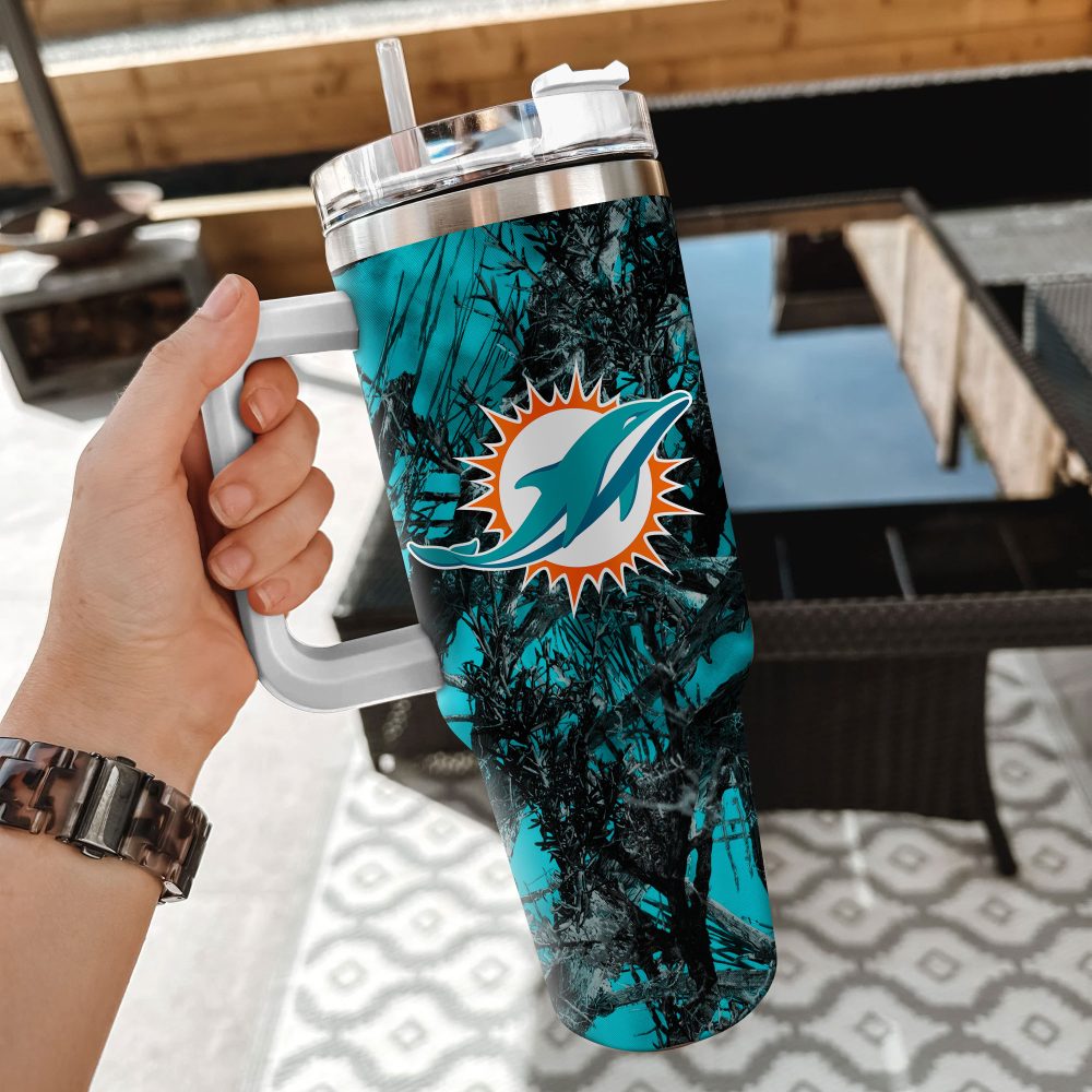 Miami Dolphins Nfl Hunting Custom Stanley Quencher 40Oz Stainless Steel Tumbler With Handle