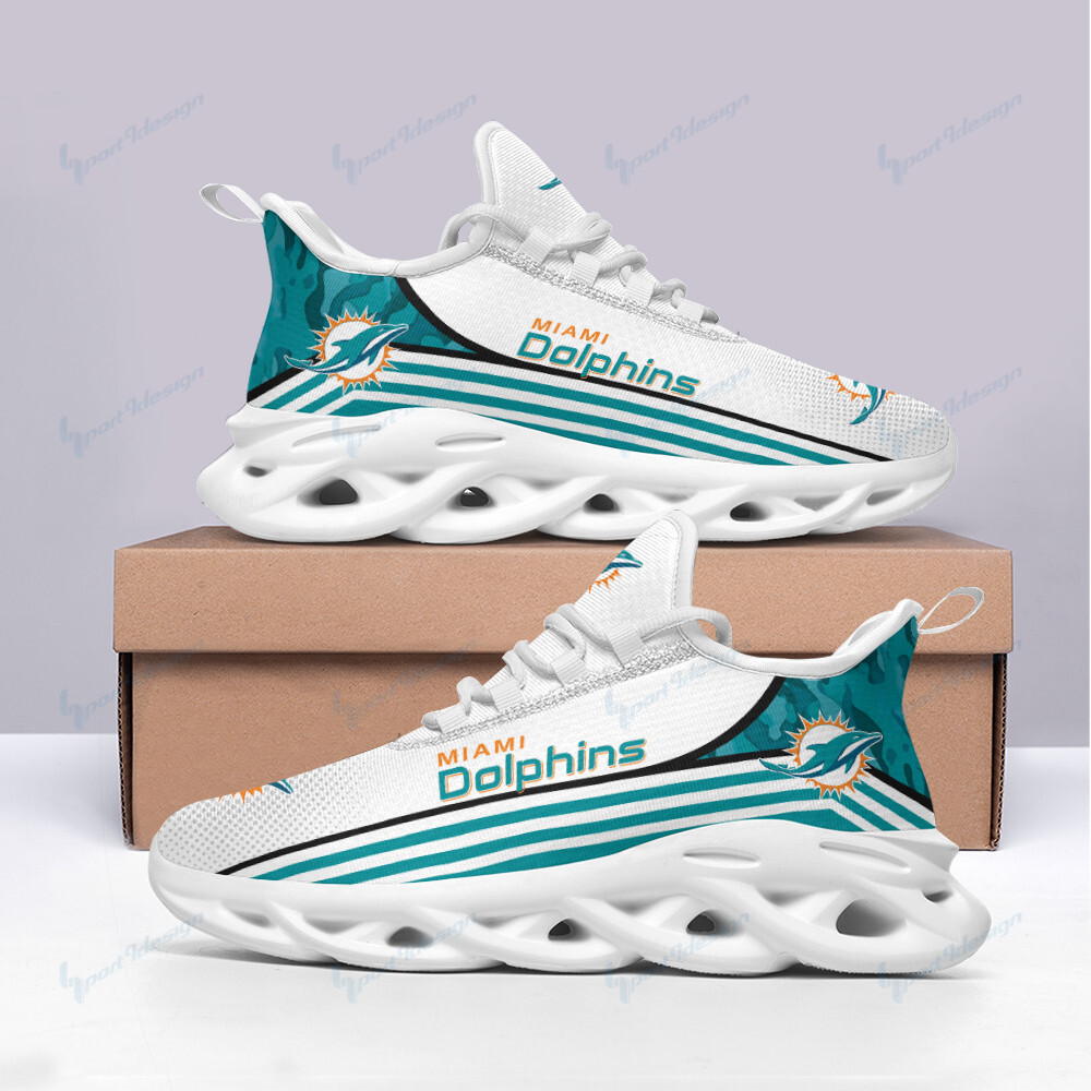 Miami Dolphins NFL Max Soul Shoes Sneakers Printed White And Black Sole For Men And Women