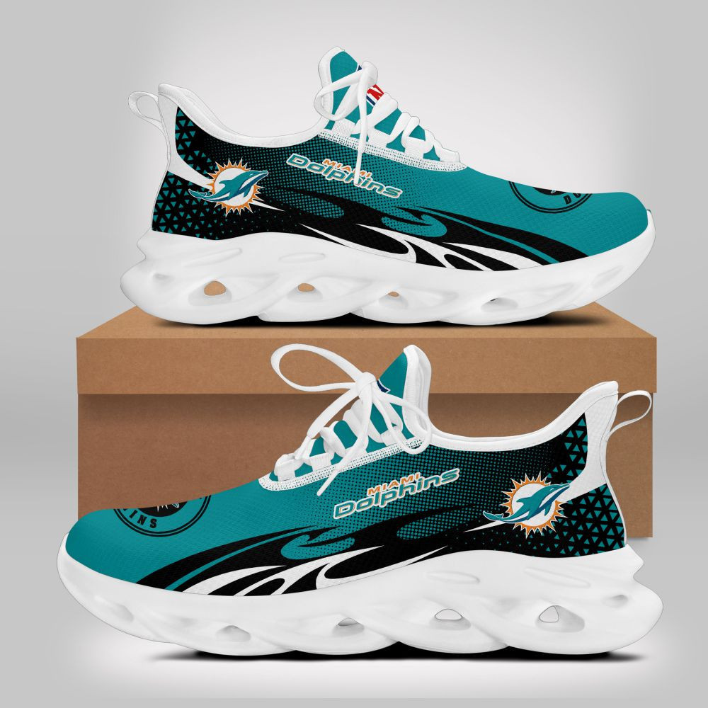 Miami Dolphins NFL Max Soul Shoes Sneakers Printed White And Black Sole For Men And Women