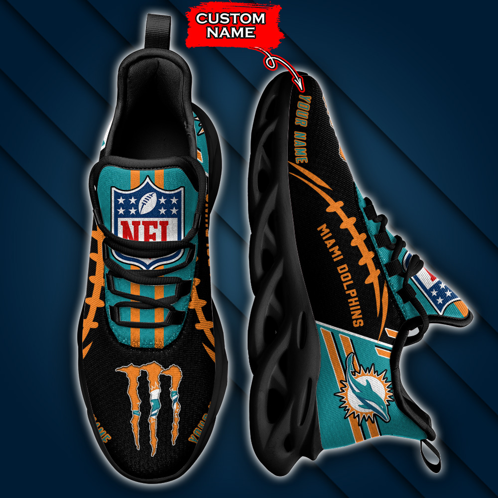 Miami Dolphins NFL Max Soul Shoes Sneakers Printed White And Black Sole For Men And Women