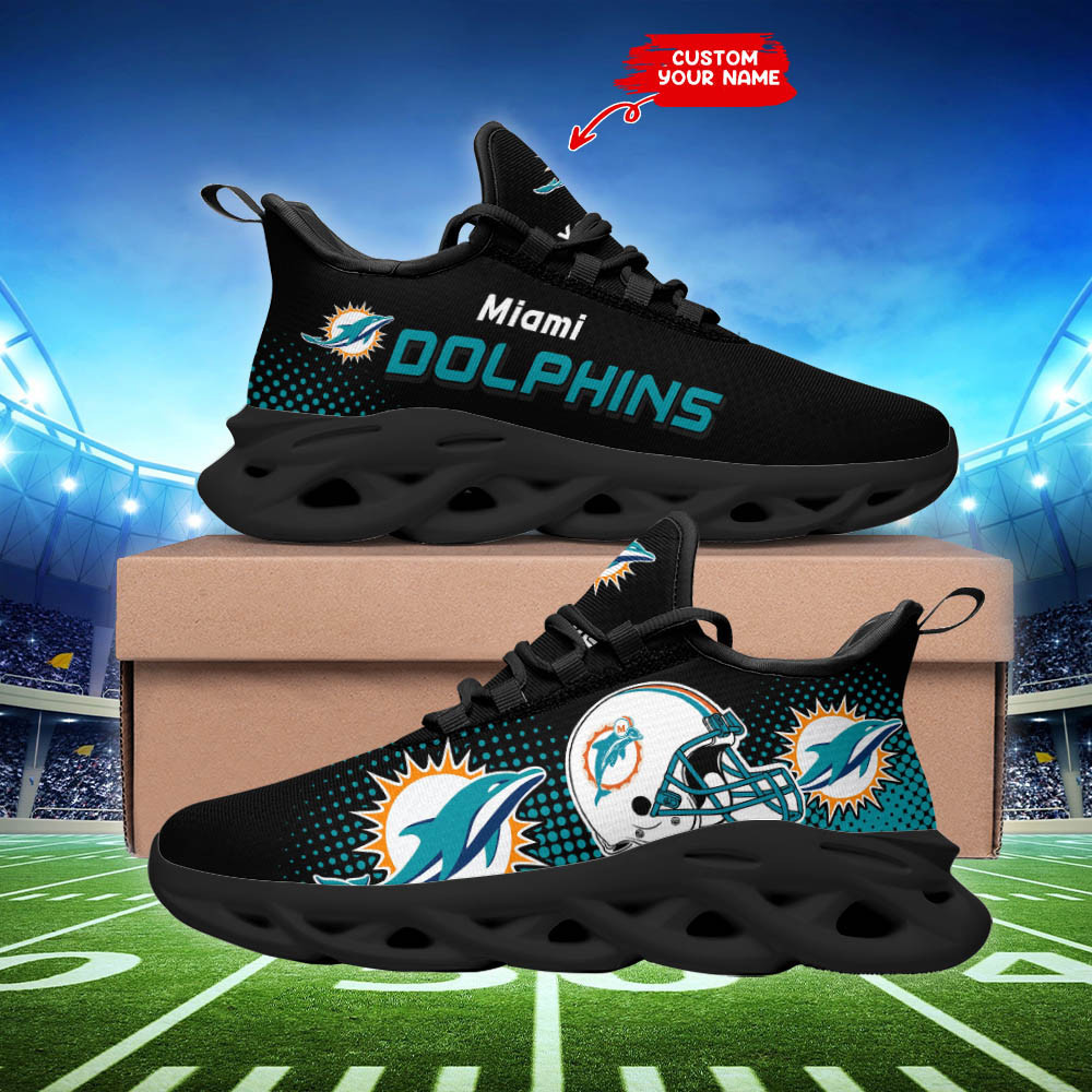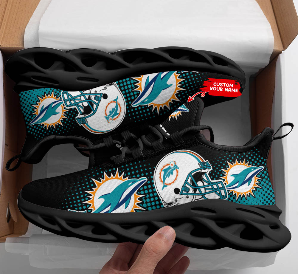 Miami Dolphins NFL Max Soul Shoes Sneakers Printed White And Black Sole For Men And Women