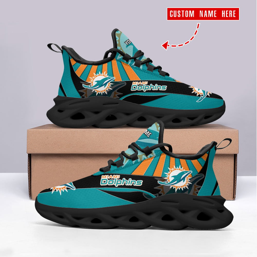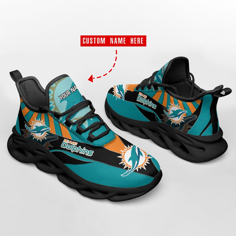 Miami Dolphins NFL Max Soul Shoes Sneakers Printed White And Black Sole For Men And Women