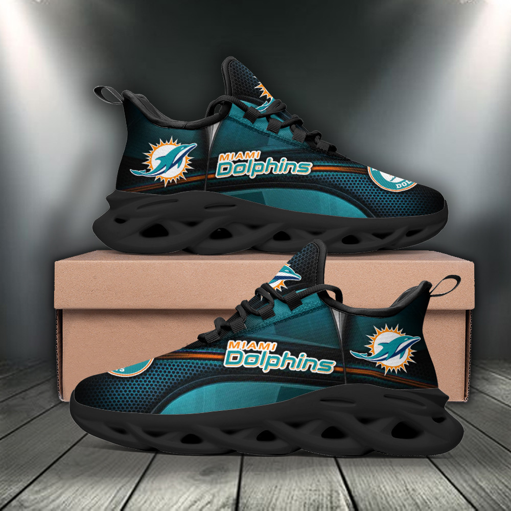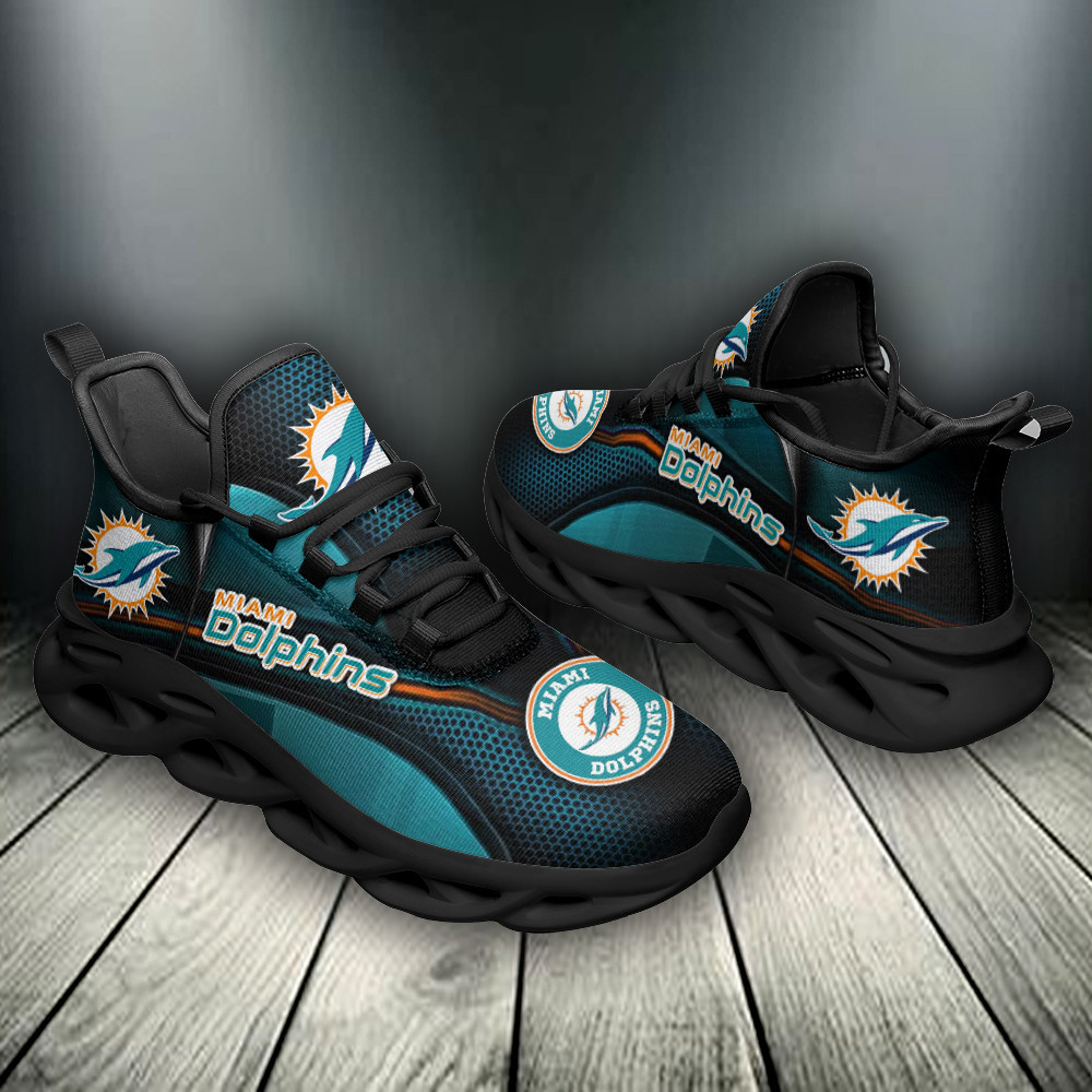 Miami Dolphins NFL Max Soul Shoes Sneakers Printed White And Black Sole For Men And Women