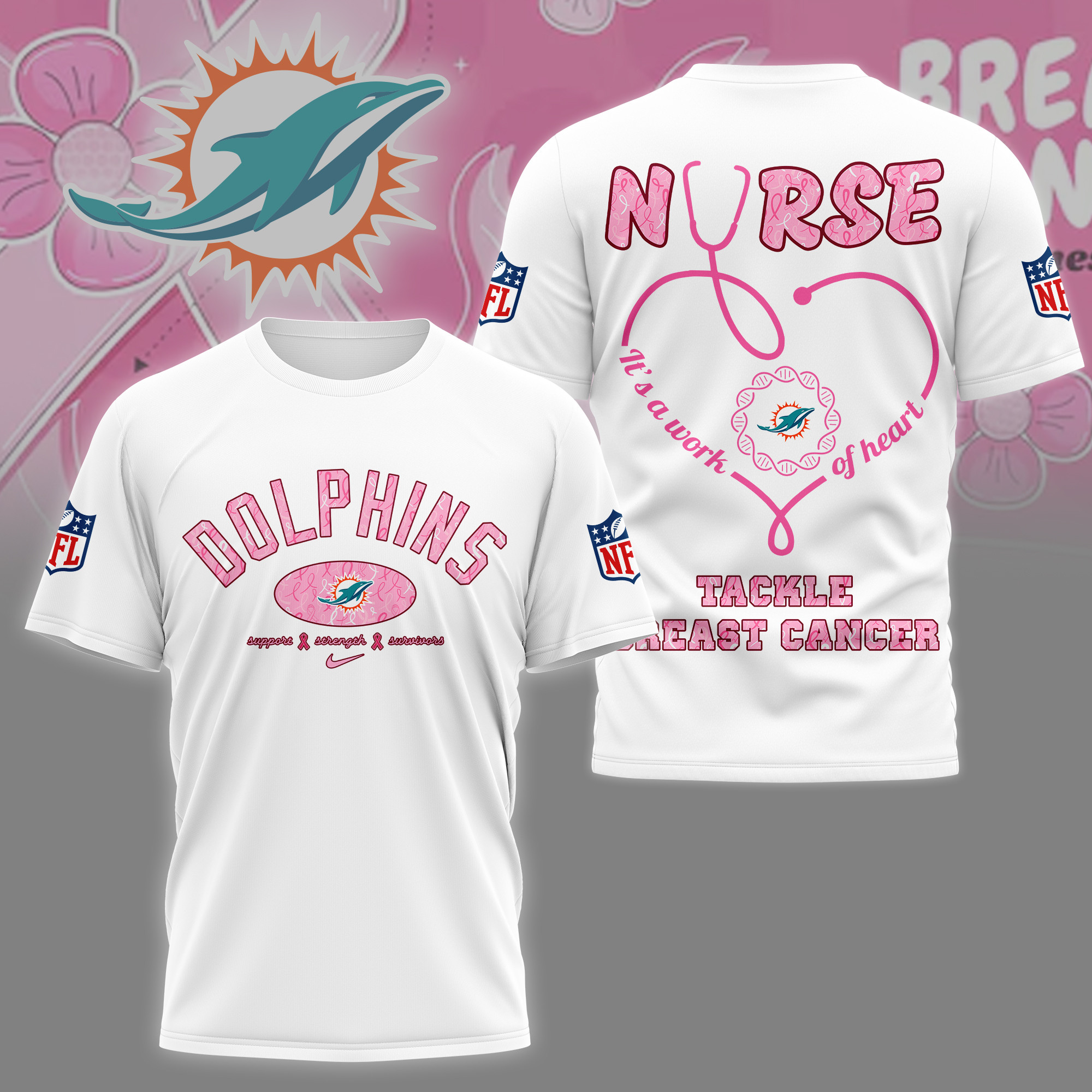 Miami Dolphins Premium Nurse Breast Cancer Awareness 3D Shirt