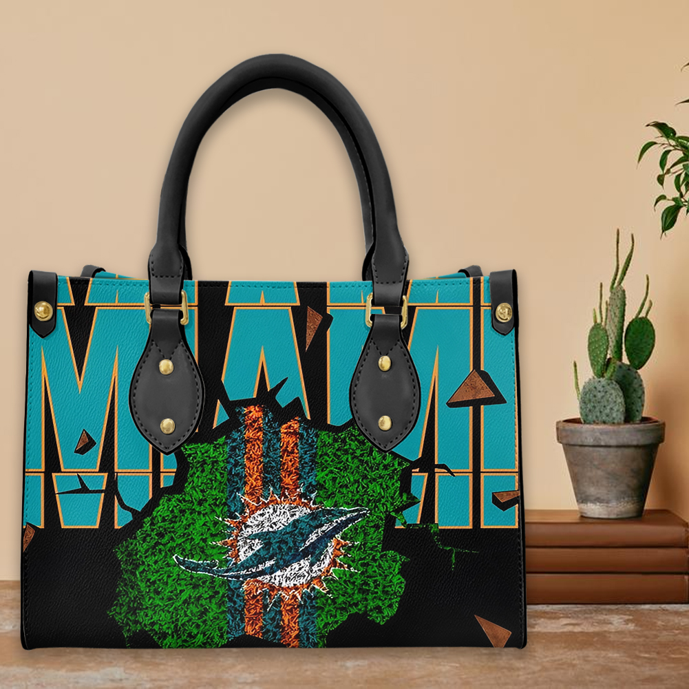 Miami Dolphins Printed Custom Leather Hand Bag For Women Sport Wear Fans Black Strap