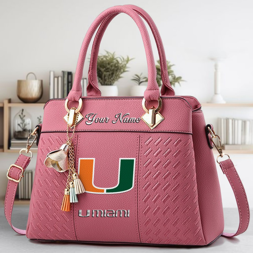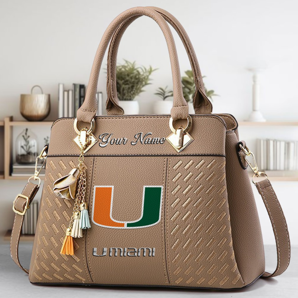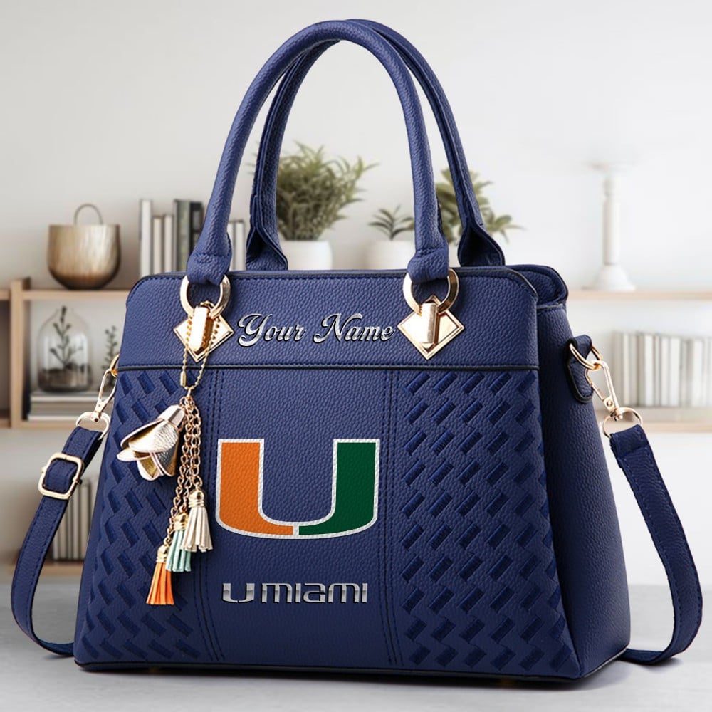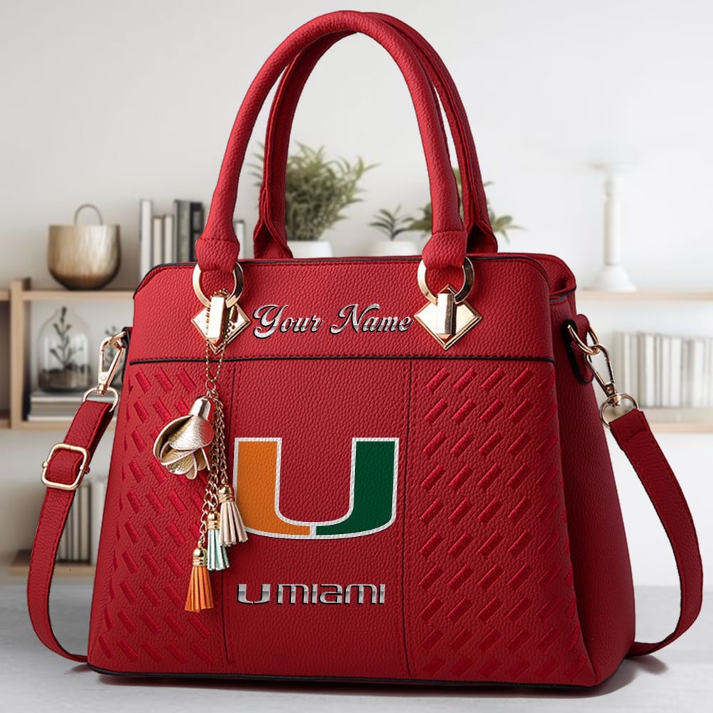 Miami Hurricanes Logo Crossbody Zip Hand Bag With Tassel Custom Name For Women
